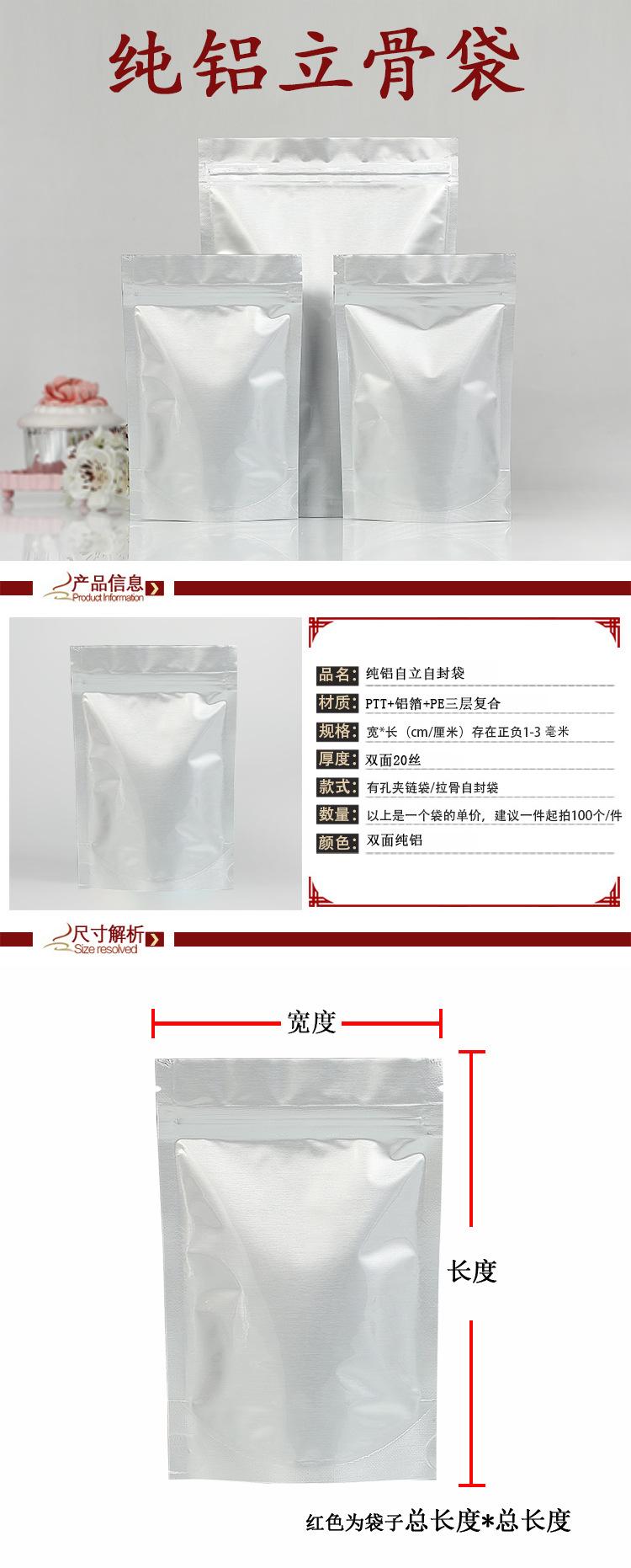 Saco autoadesivo de alumínio puro, saco autovedante de folha de alumínio prateado, saco para comida de chá, isca para comida de gato, comida de cachorro, embalagem de atacado personalizada