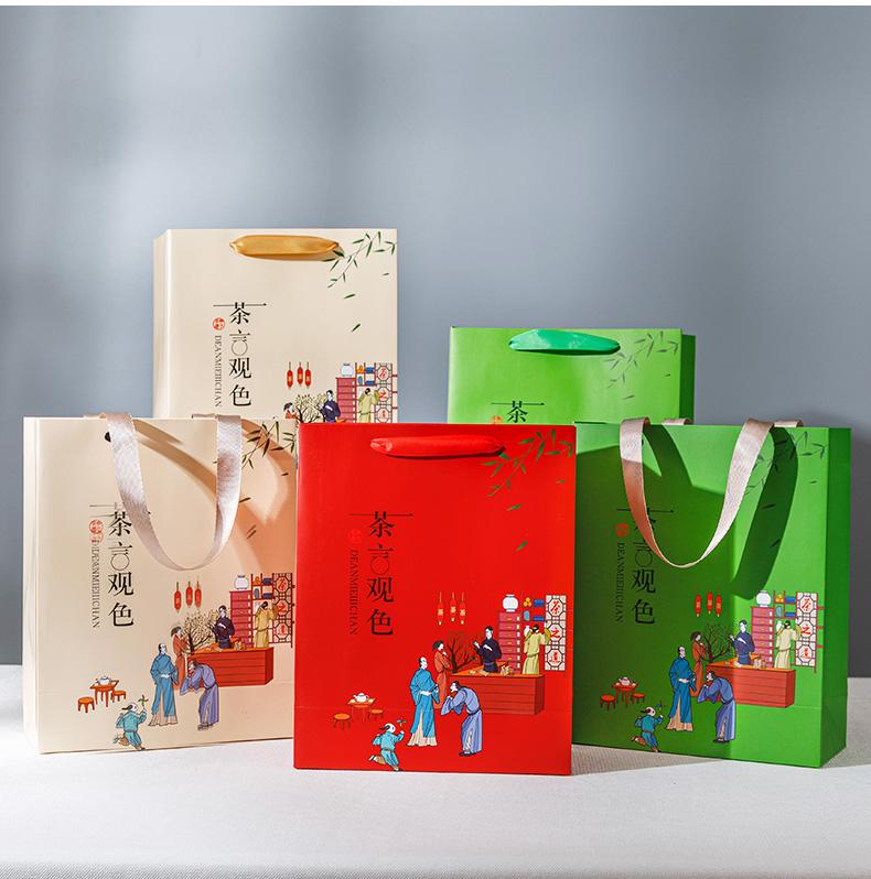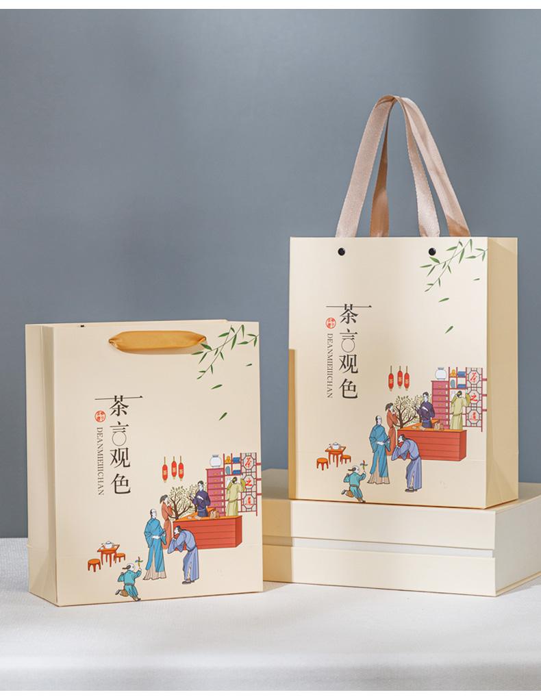 Sacola de chá requintada universal, embalagem de presente em cartão branco espesso, sacola de papel estilo retrô, conjunto de logotipo