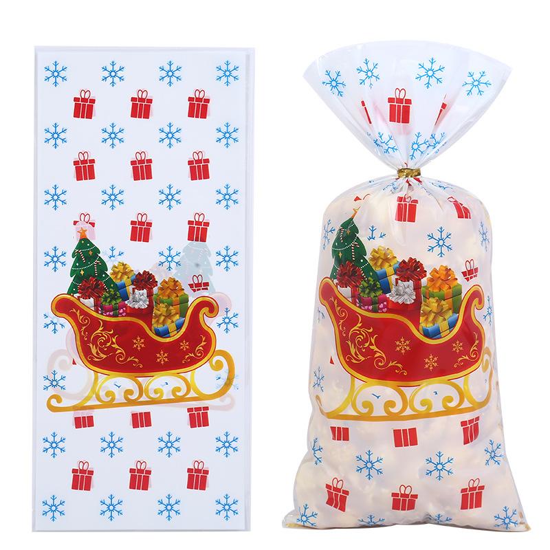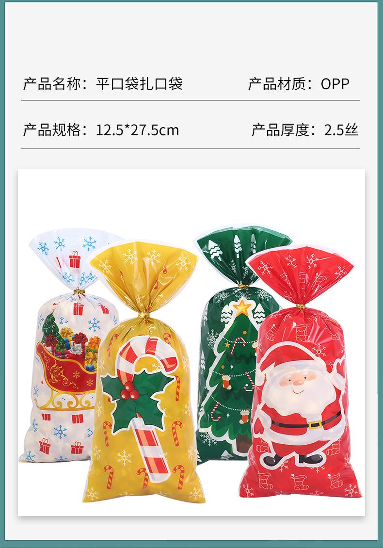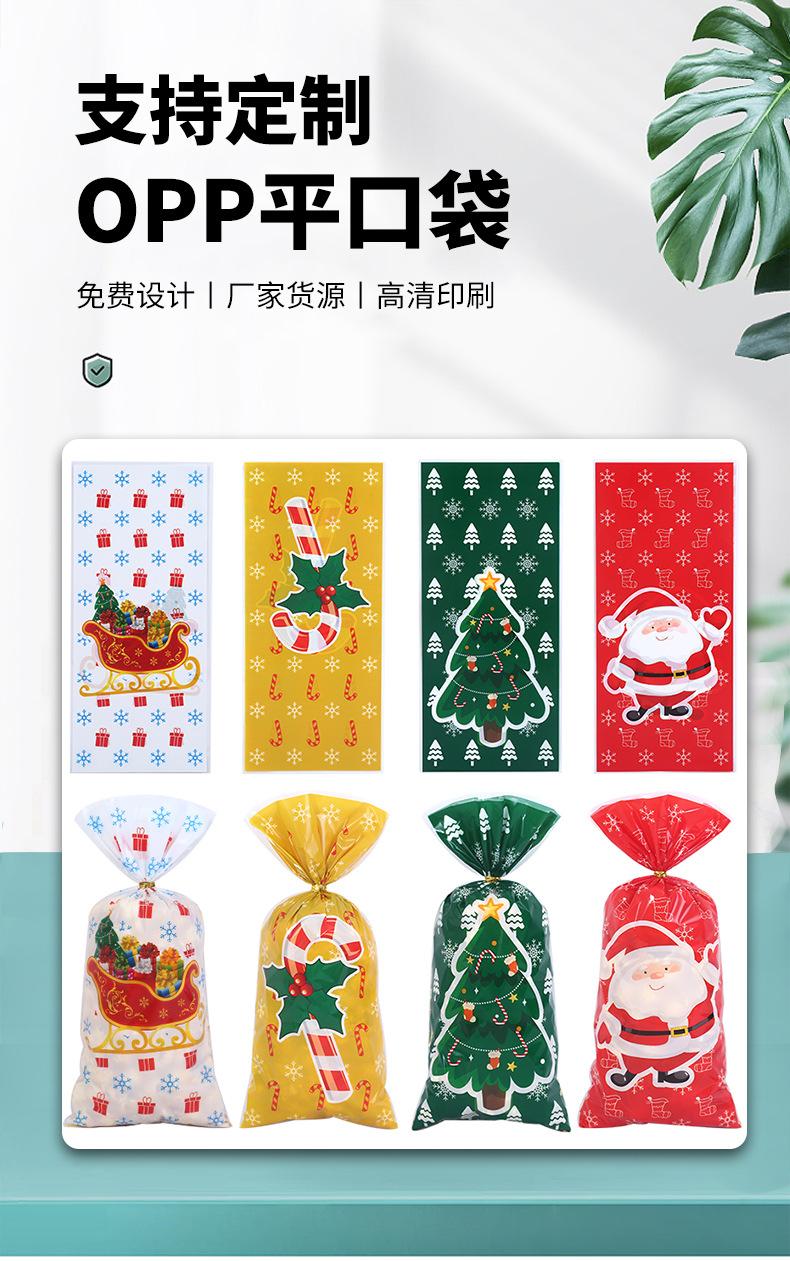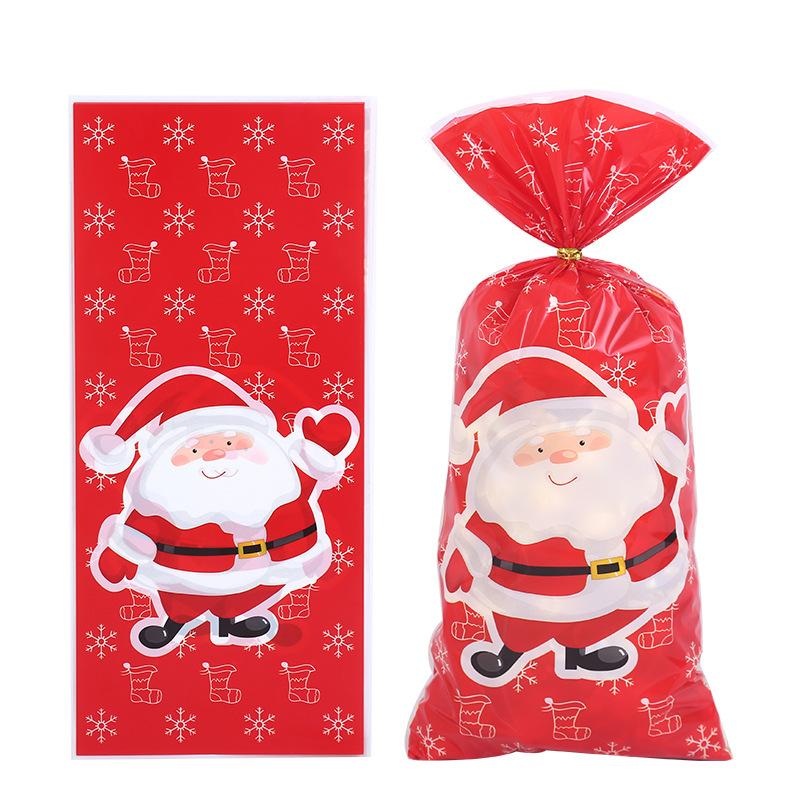 Sacola de Presente de Natal Transfronteiriça Sacola de Embalagem de Doces Papai Noel Sacola Plana OPP Sacola de Embalagem de Lanche para Feriado