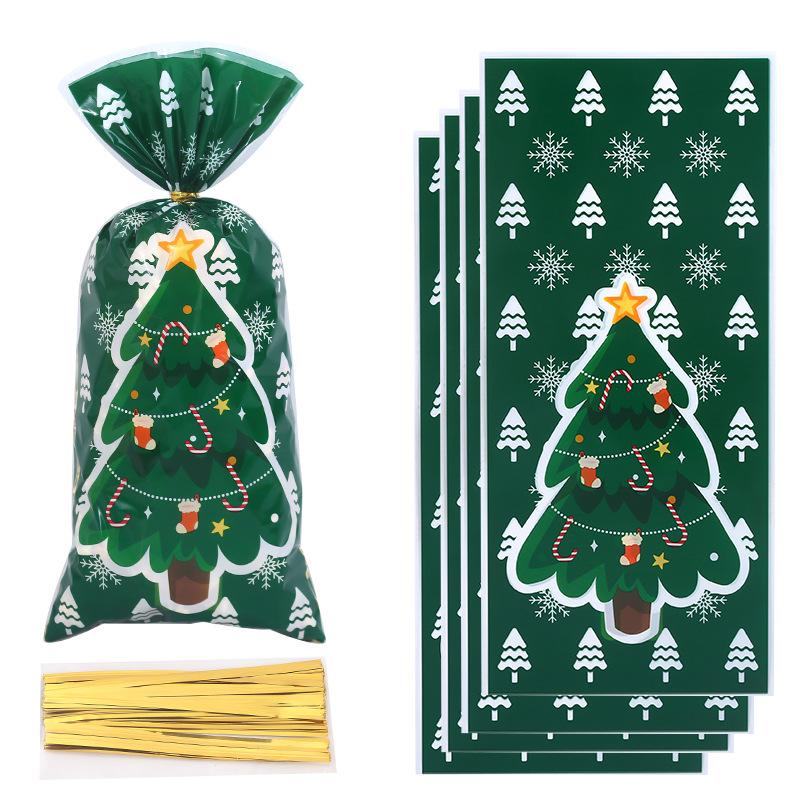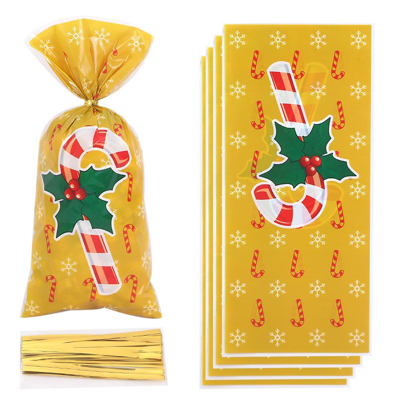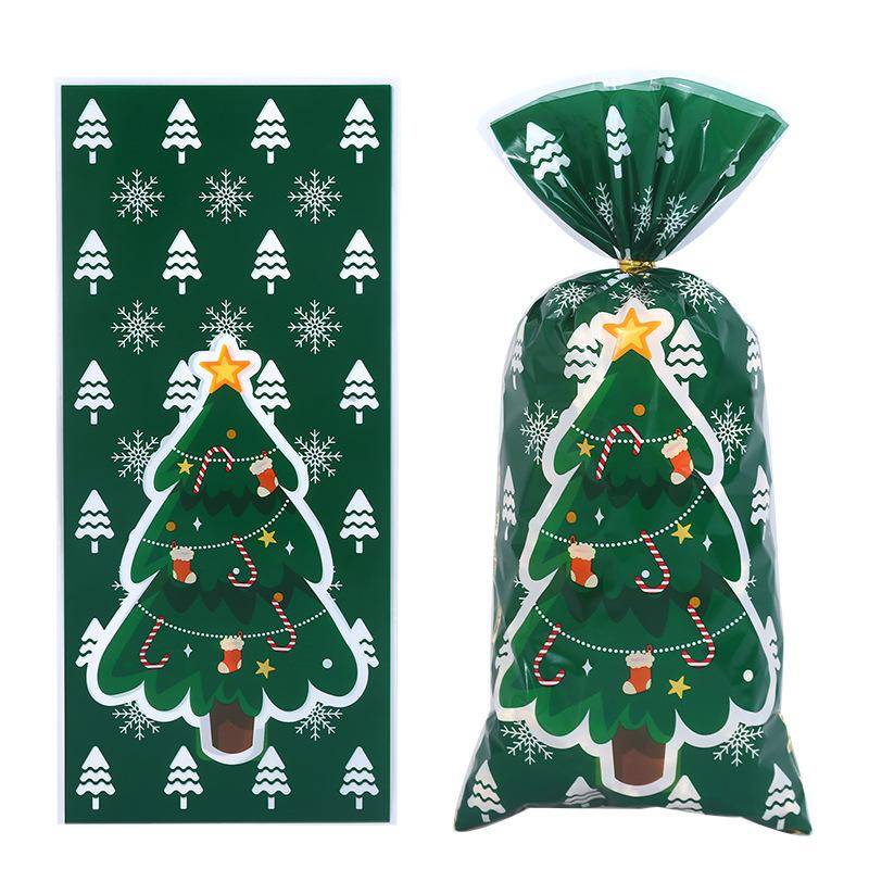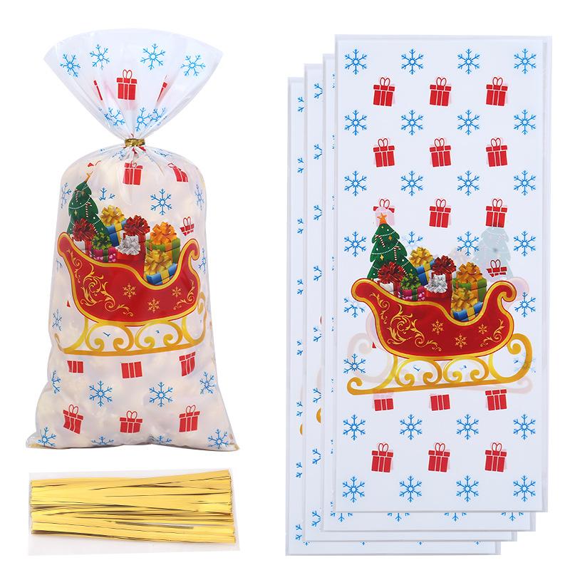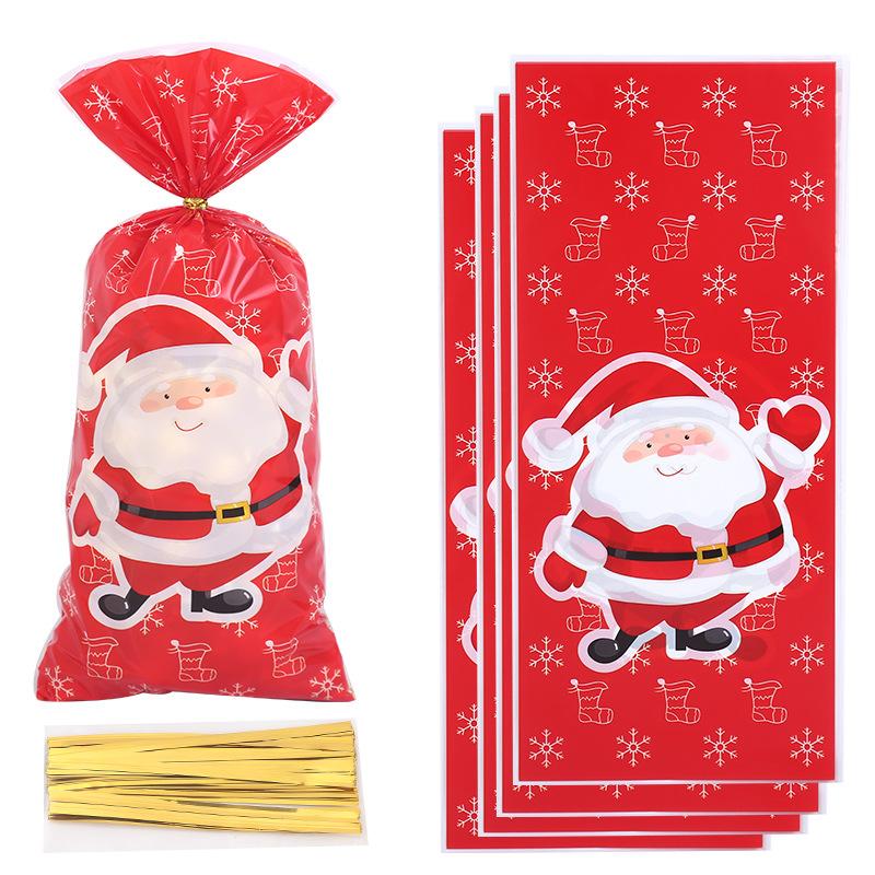 Sacola de Presente de Natal Transfronteiriça Sacola de Embalagem de Doces Papai Noel Sacola Plana OPP Sacola de Embalagem de Lanche para Feriado