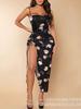 2025 Novo Europeu e Americano Transfronteiriço Garota Quente Desejo Puro Floral Sem Costas Fenda Vestido de Verão de Alças Saia Longa para Mulheres