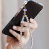 Corrente de celular de citrino natural feminina com pingente de corda de cinco vias para celular, pingente de nicho de pulso
