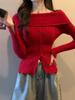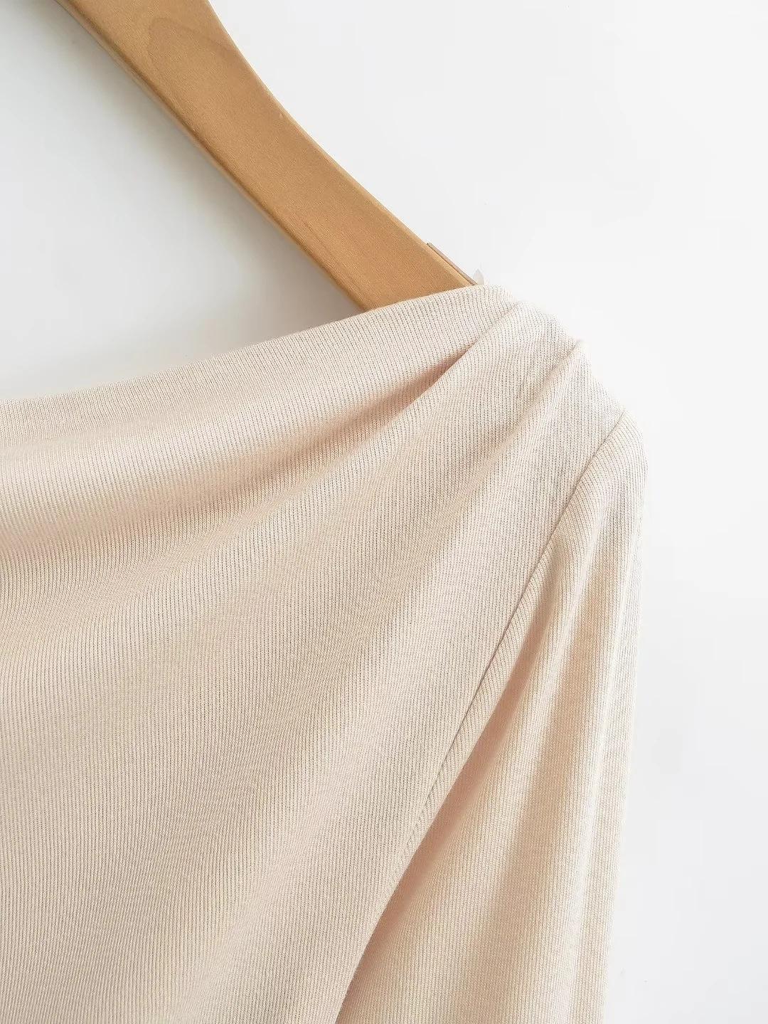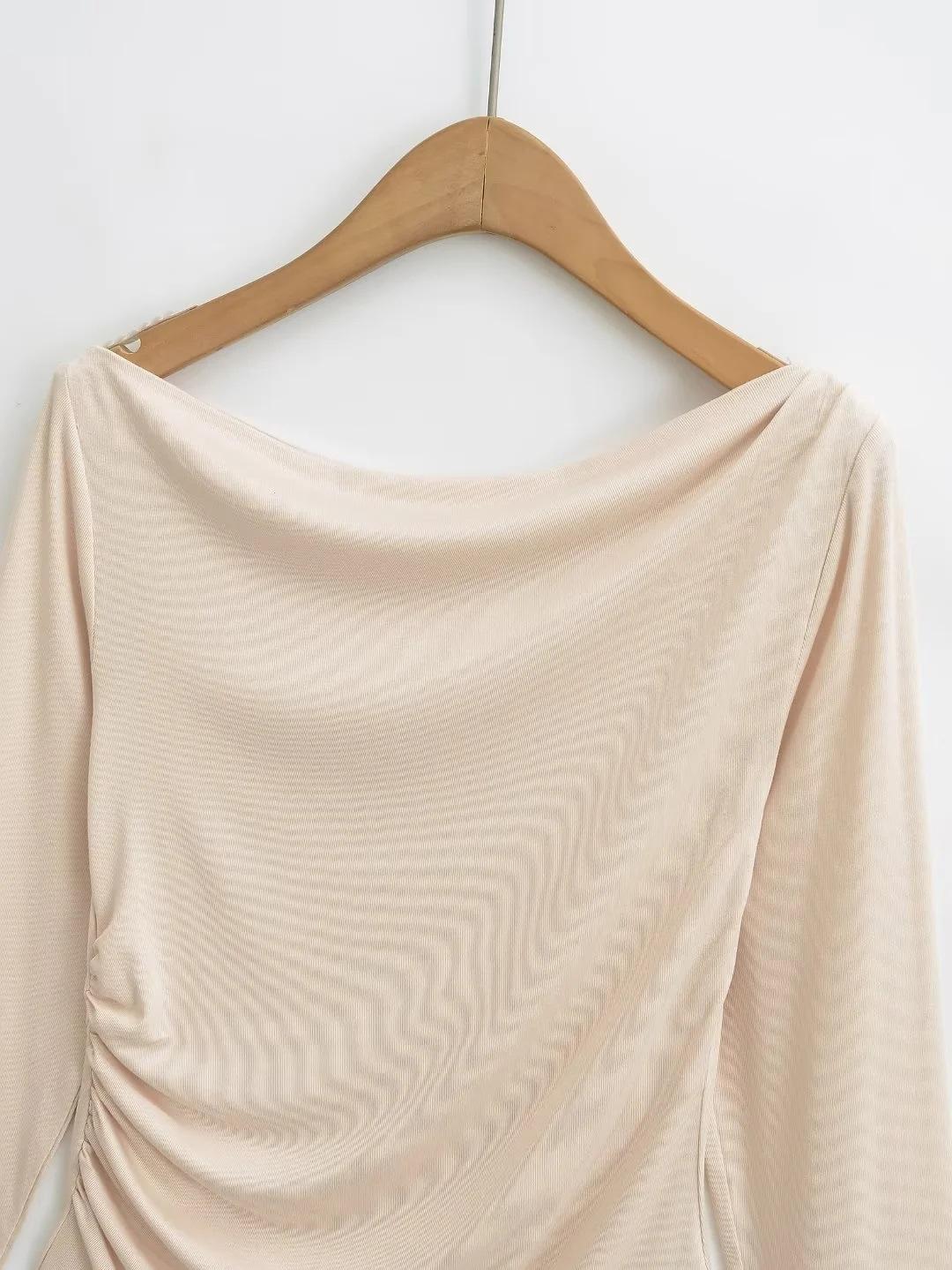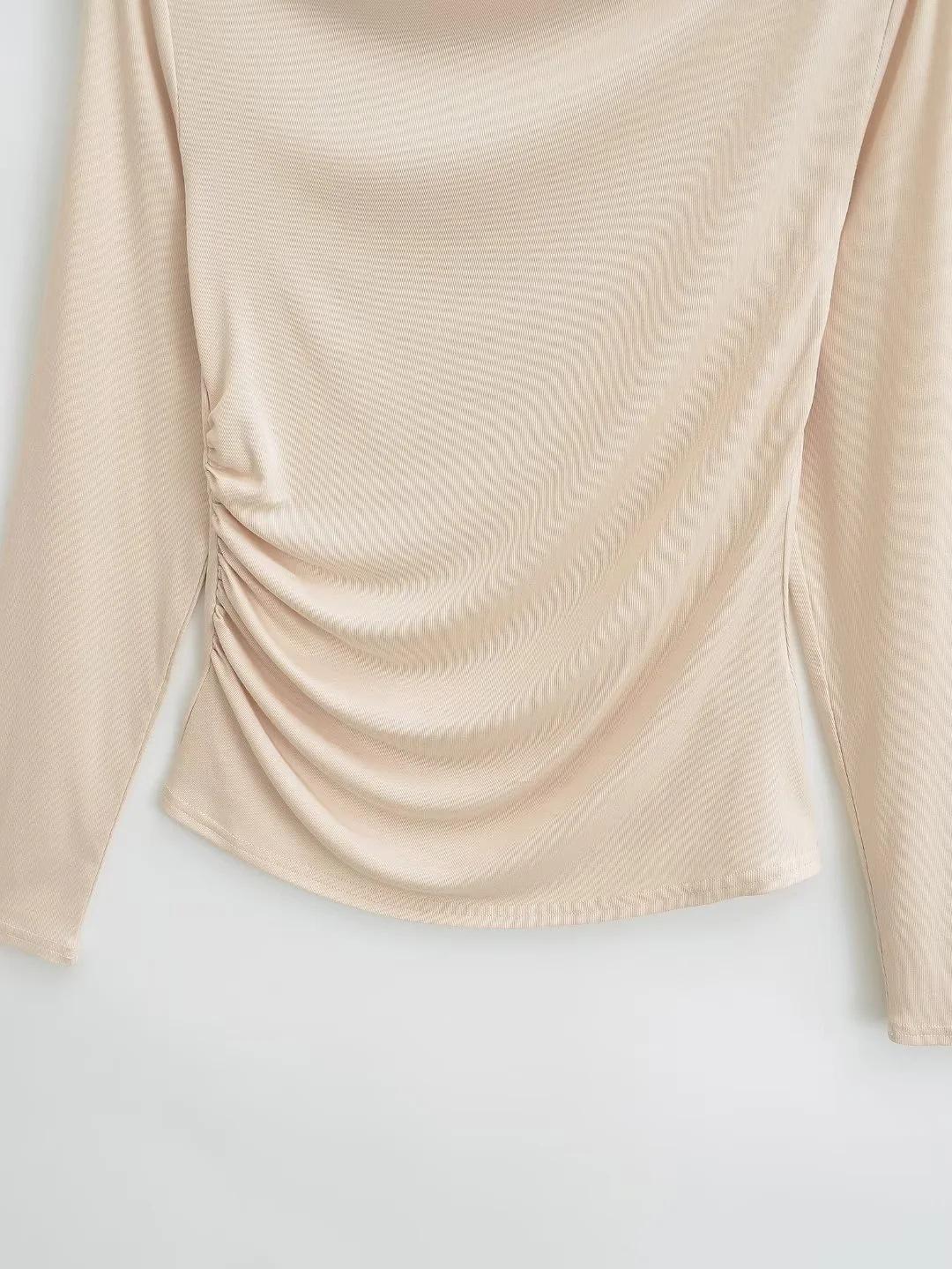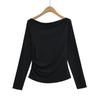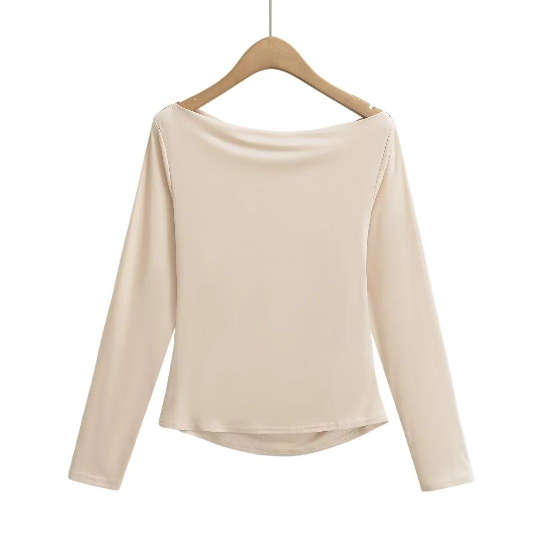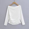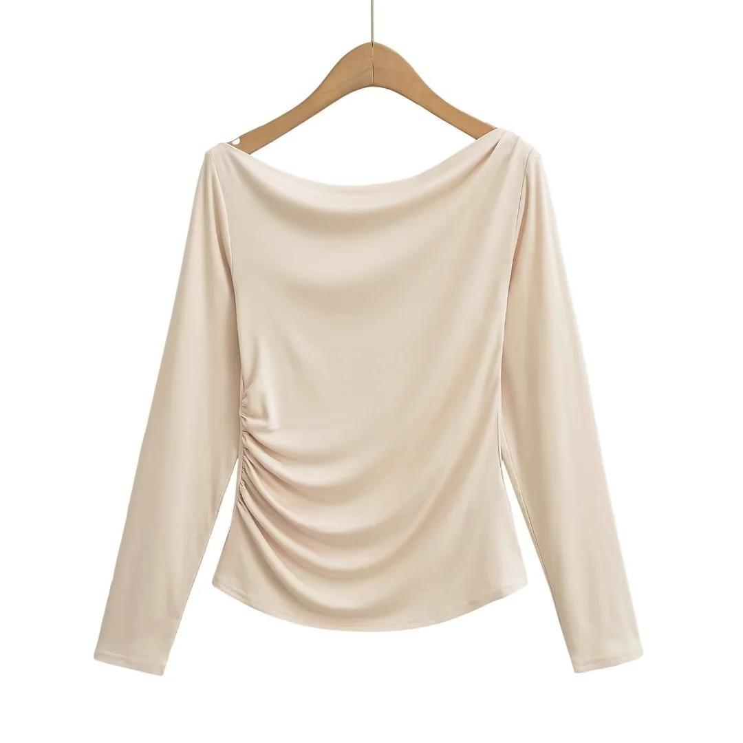 Camiseta feminina de manga comprida com gola inclinada sexy europeia e americana, outono, nova Spice Girls, plissada, slim-fit, camisa de base emagrecedora