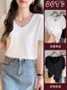 Simples Branco plus size Slim Nova Chegada 2025 Ombro T-Shirt V-Neck All-Match Verão Estilo Coreano High-Grade Elegante Solto Feminino