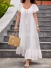Vestido longo de renda boêmio europeu e americano, vestido de verão branco para praia, novo estilo, vestido sexy sem alças, feminino