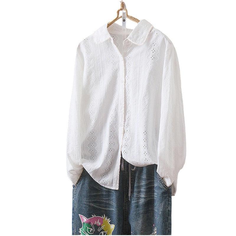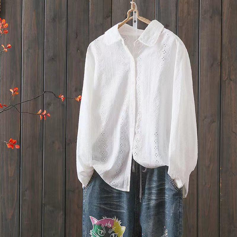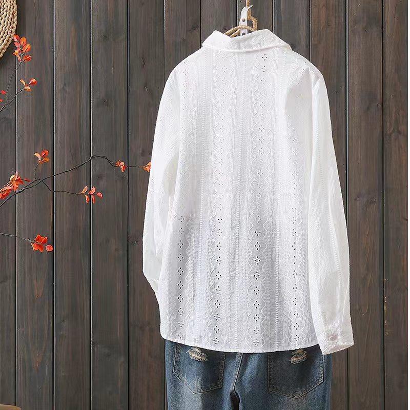 8968 All-match Camisa Bordada Feminina Primavera 2024 Novo Estilo Coreano Design Gentle Chic Top