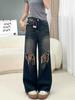 Calças Jeans Retrô Estilo Americano Velhas Lavadas Rasgadas Femininas Outono Novo Cintura Alta Emagrecedora Perna Reta Larga