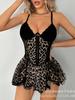2025 novo europeu e americano transfronteiriço pura garota gostosa estampa de leopardo costura costas nuas alças vestido de verão saia mulheres