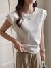 Camiseta feminina branca de gola redonda e manga curta, primavera e verão, novo design, Sense Niche, solta, casual, ombro fino, top moderno