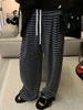 Calças casuais soltas listradas de malha, calças femininas de inverno, nova chegada, estilo descontraído, forradas com lã, calças soltas, calças largas transversais