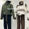 Casaco de lã polar de outono e inverno com forro de lã feminino casual roupas de lã gola vertical cardigan grosso esportes ao ar livre suéter quente