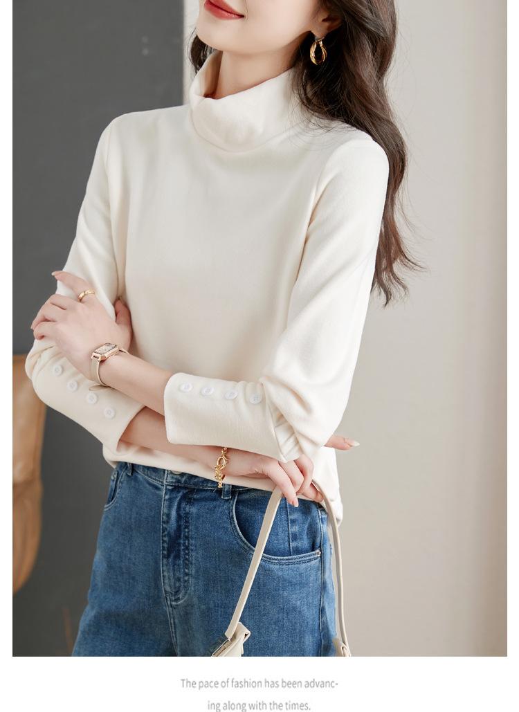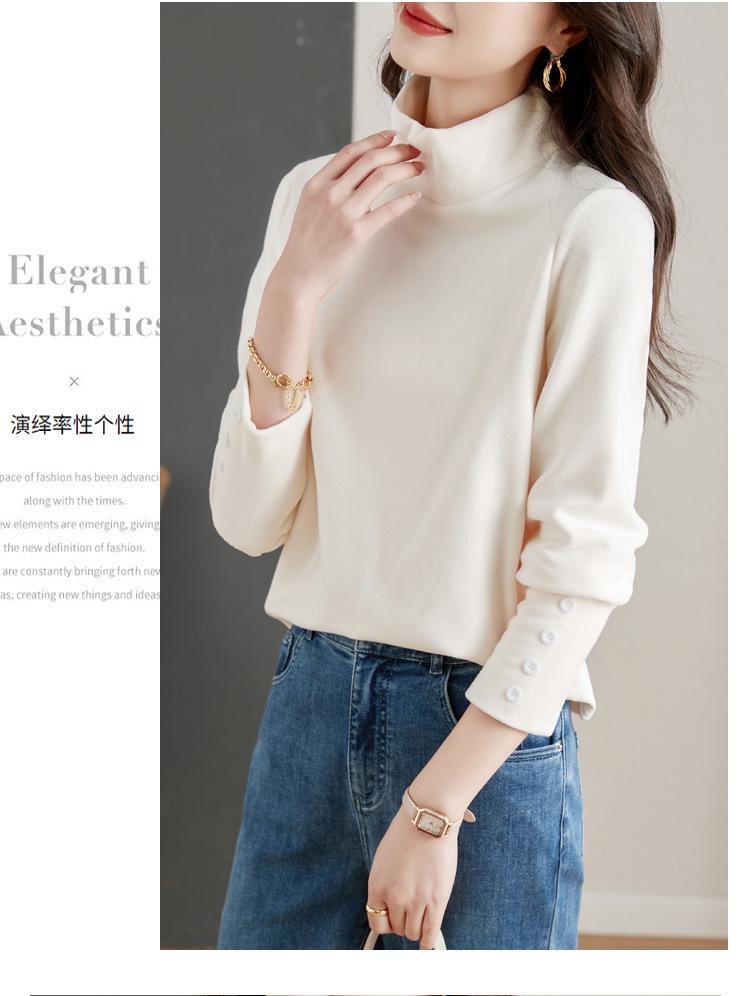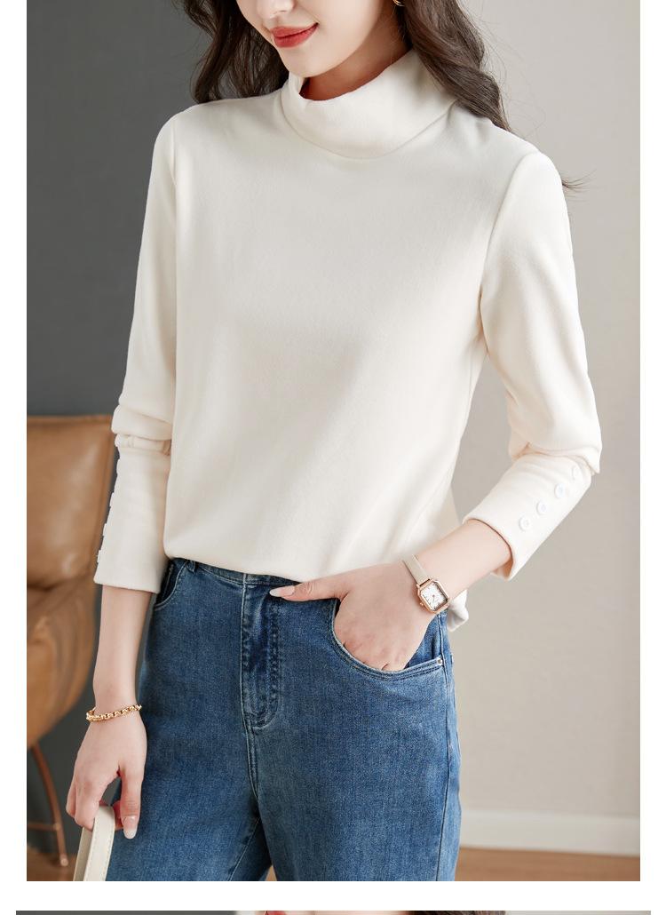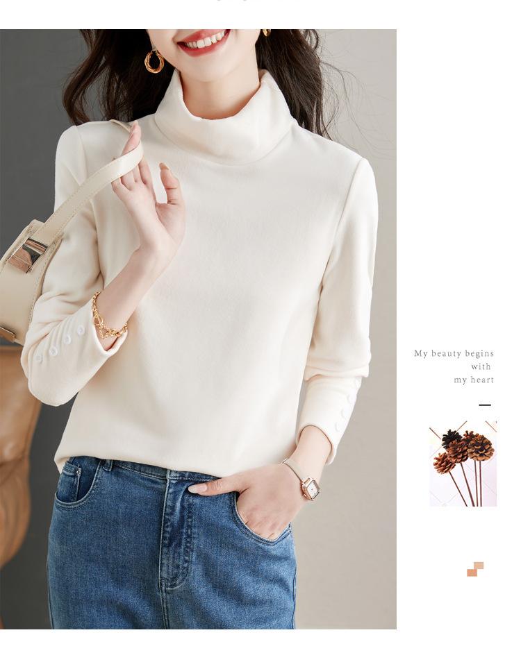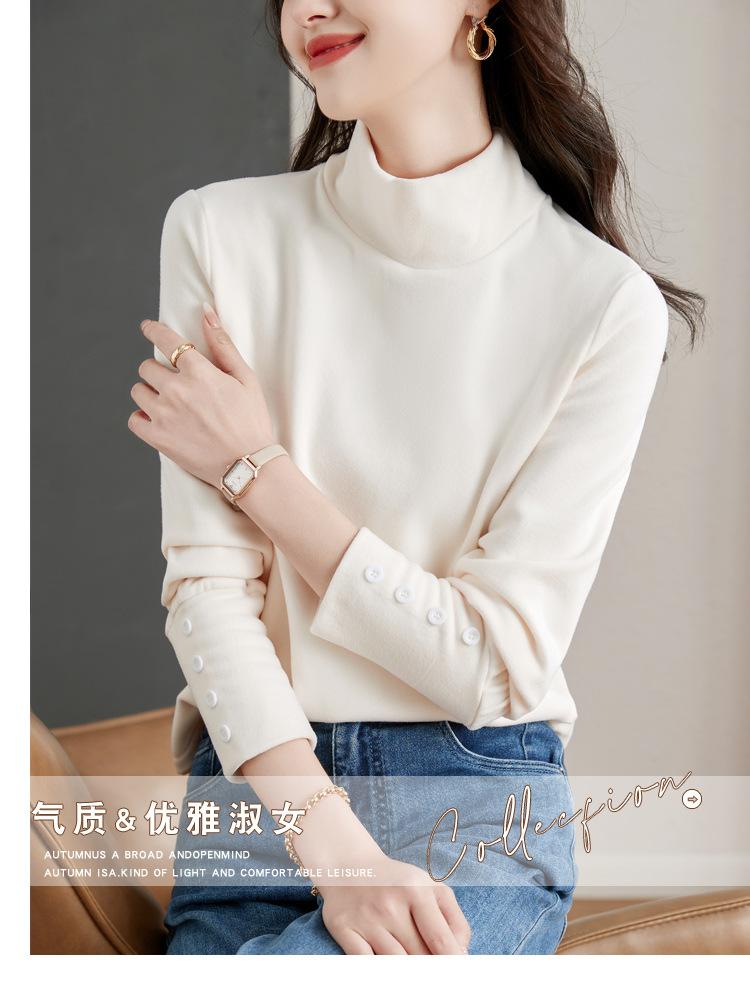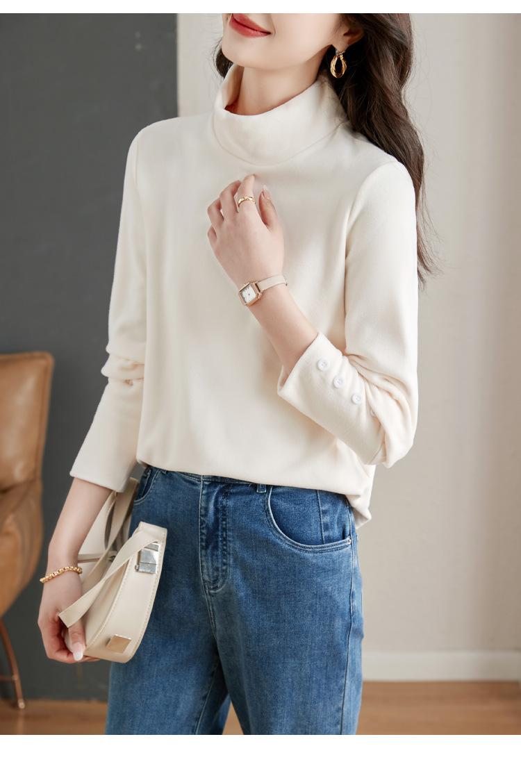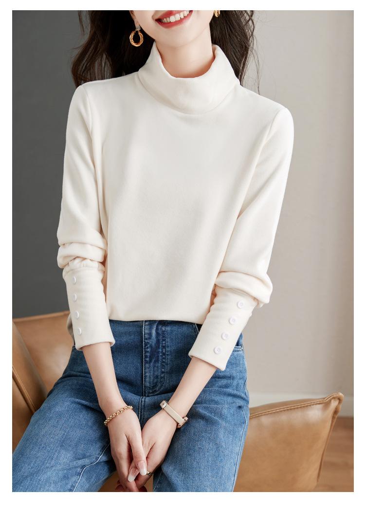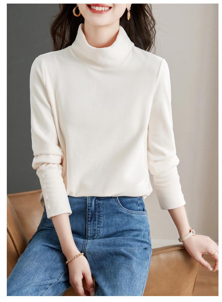 Camiseta de manga comprida de gola alta de veludo alemão espessada, roupas femininas de outono 2024, outono e inverno, nova camisa feminina com parte inferior e parte superior interna