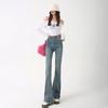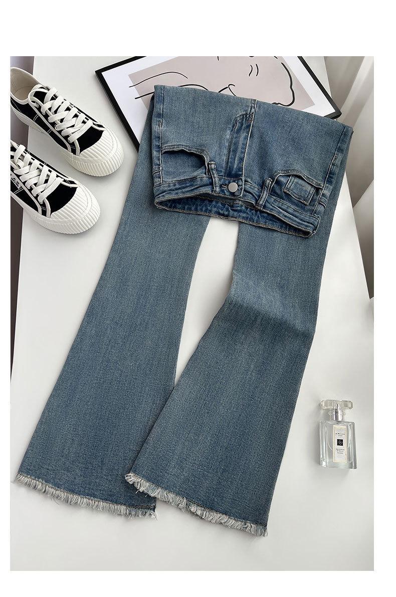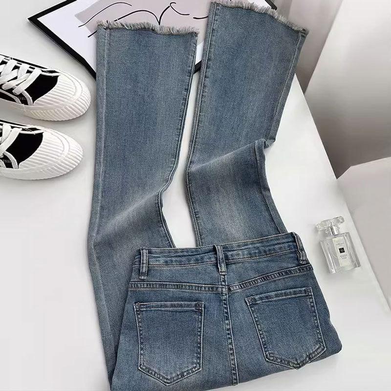 Calça jeans feminina escura micro la, cintura alta, fina, verão 2023, nova chegada, pequena, nove pontos, solta, moderna, trompete