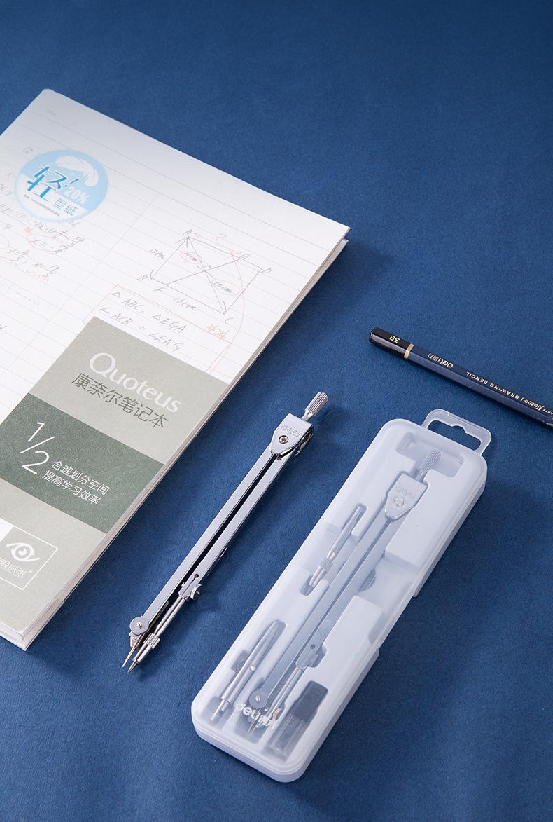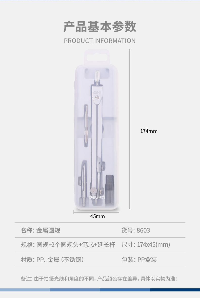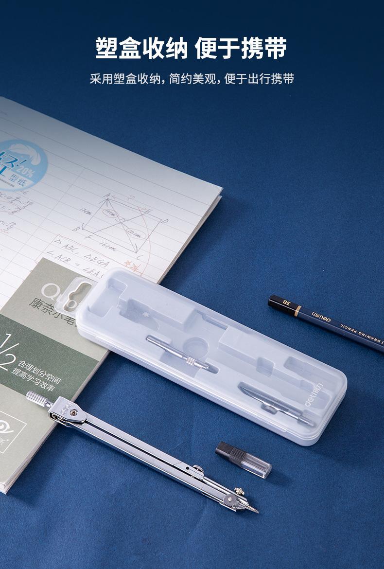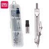 Conjunto de bússola Deli 8603, desenho de engenharia, design, medidor de marcação multifuncional, caneta de bússola de metal para estudantes, papelaria