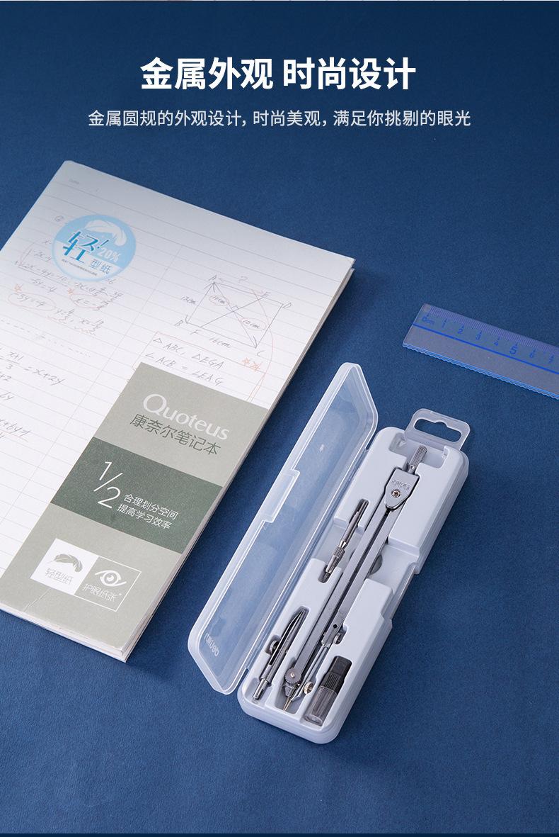 Bússolas Deli 8603, conjunto de desenho de engenharia, medidor de marcação multifuncional, caneta de metal para estudantes, artigos de papelaria