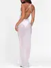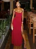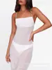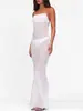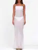 2025 Novo Vestido Longo Slim de Moda Transfronteiriça Europeia e Americana com Decote Ombro a Ombro Vazado Sexy em Malha Transparente para Mulheres