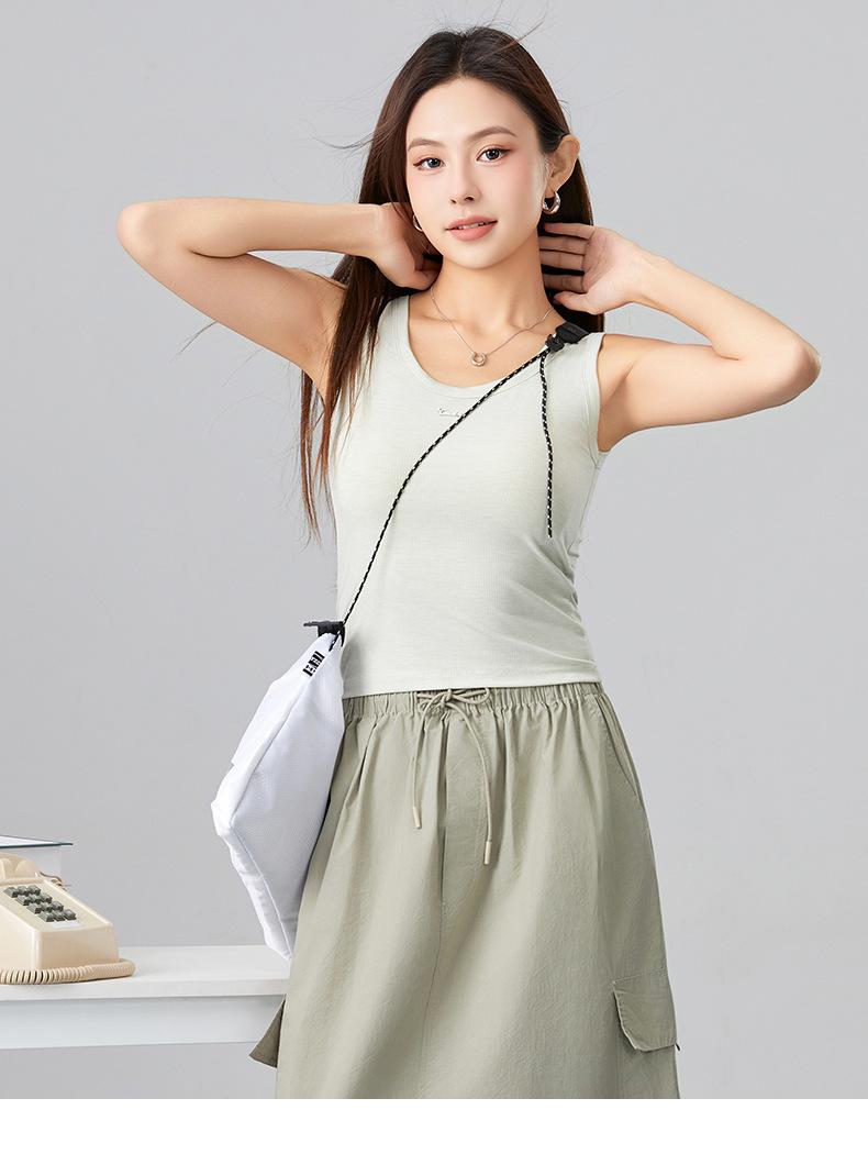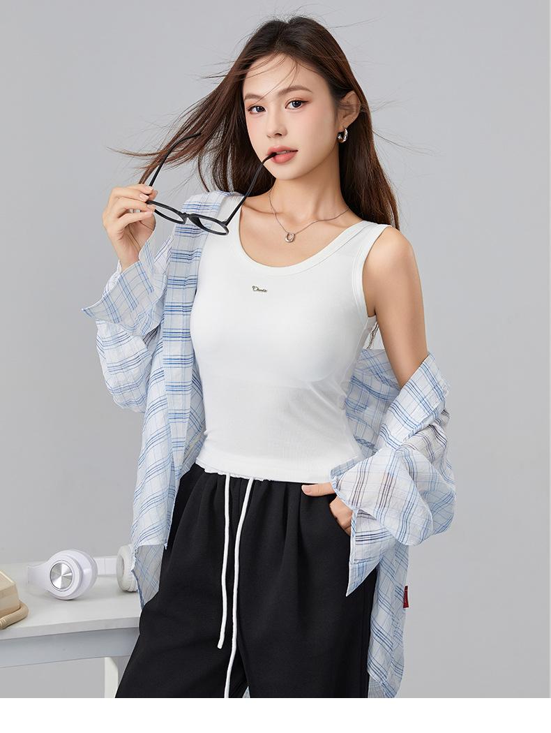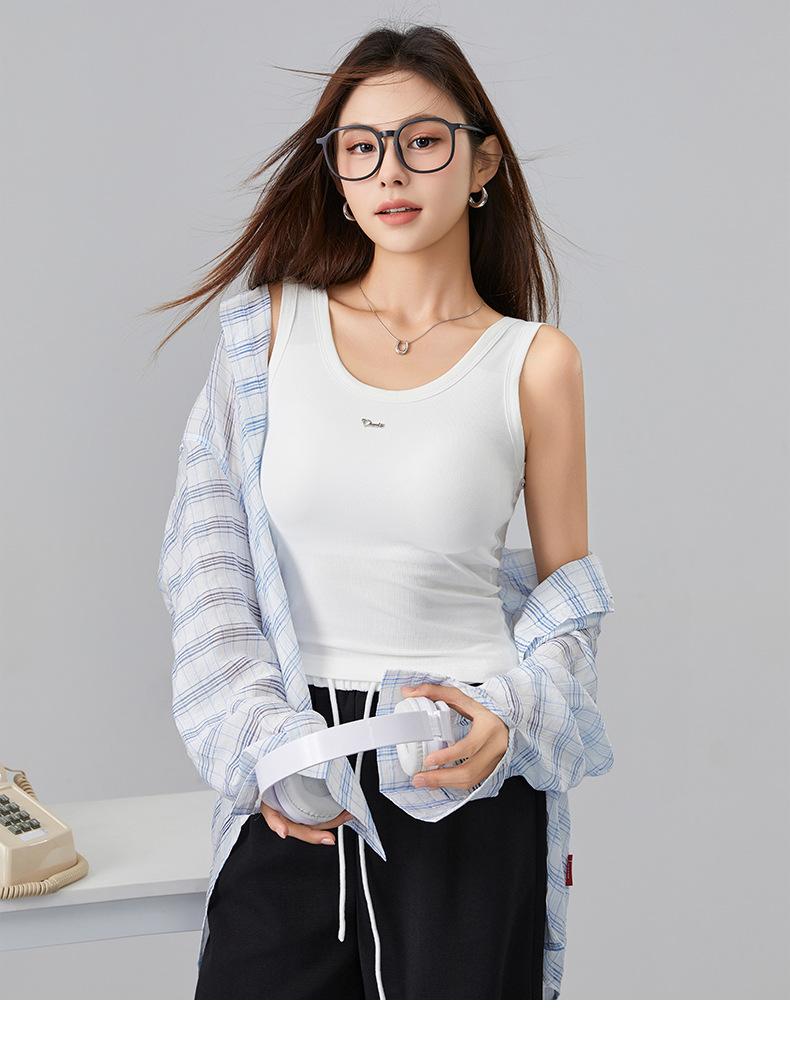 Nova Regata Branca Pequena Feminina de Verão Slim-fit Interna Curta Tricotada Sem Mangas com Bojo para Uso Externo