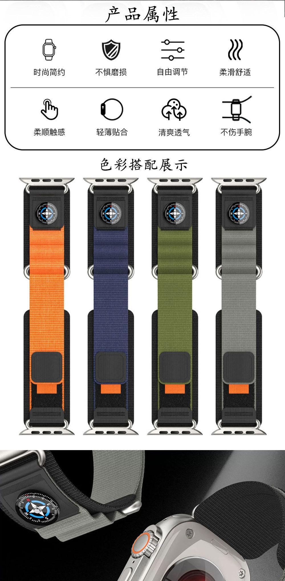 Pulseira de nylon com bússola para Apple Apple Watch 910ª geração Ultra 1/2 49 mm iWatch