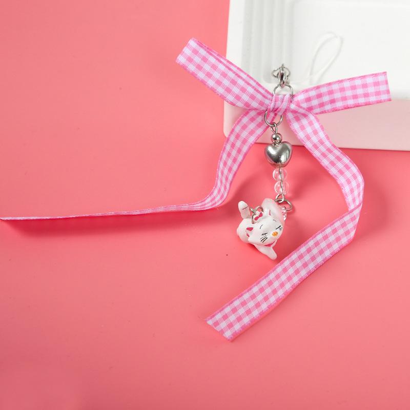 Cordão Curto para Celular Estilo Fofo Anti-perda Pulseira Feminina Feita à Mão Gato Boutique Universal Joia Pingente Pingente Câmera