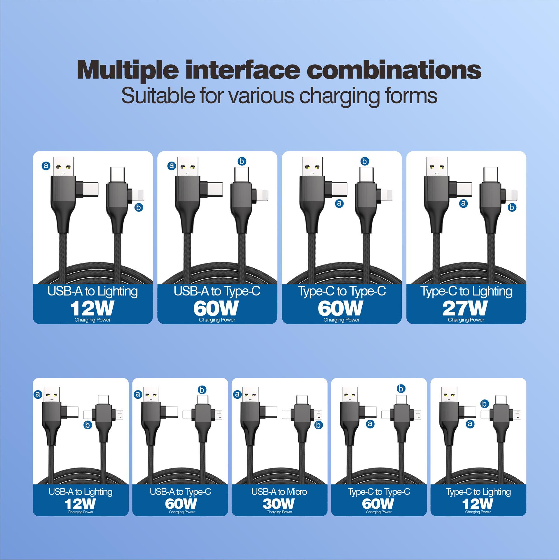 Em estoque novo 60W quatro em um linha de dados de carregamento rápido PD27W para telefone celular Apple TYPEC carregamento rápido atacado