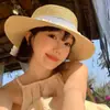 Chapéu de palha bordado com laço feminino, verão 2025, novo chapéu de pescador com aba grande e proteção solar para o mar