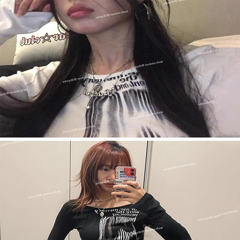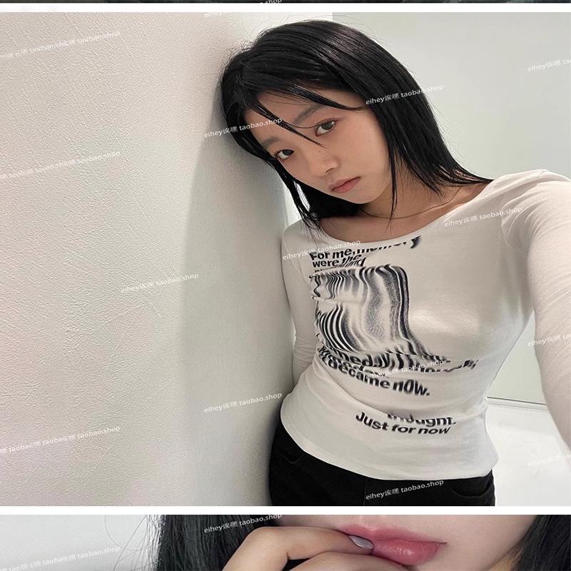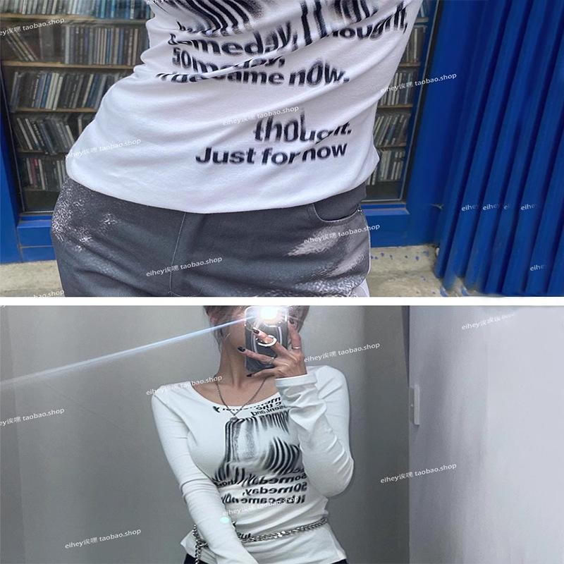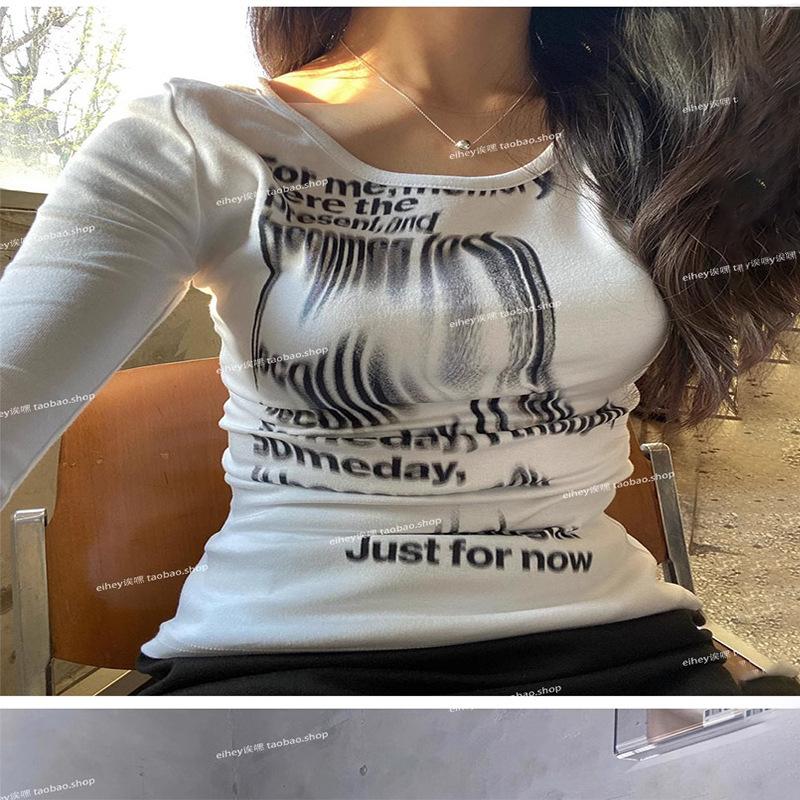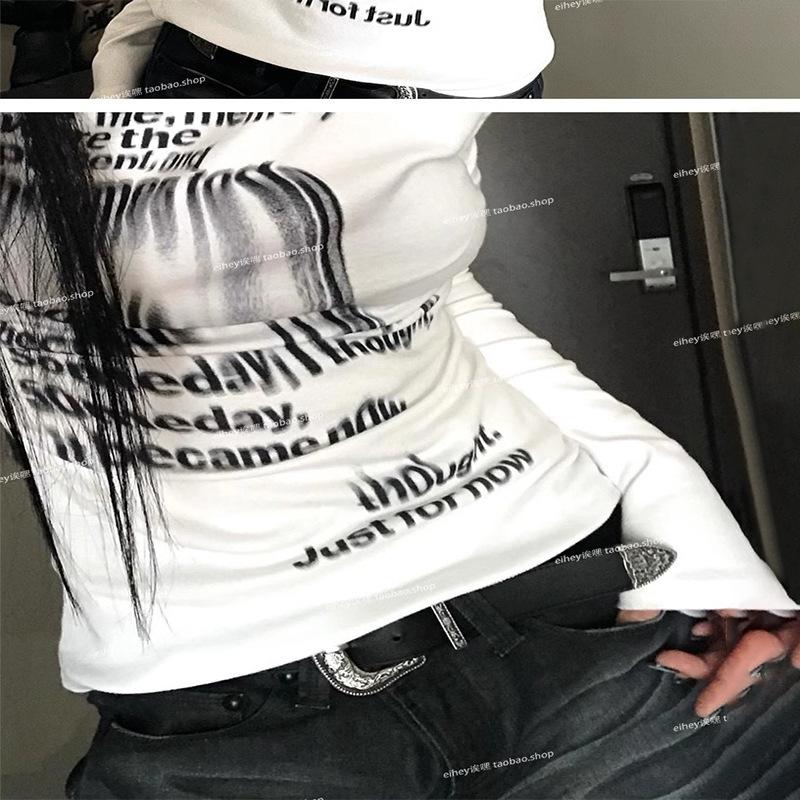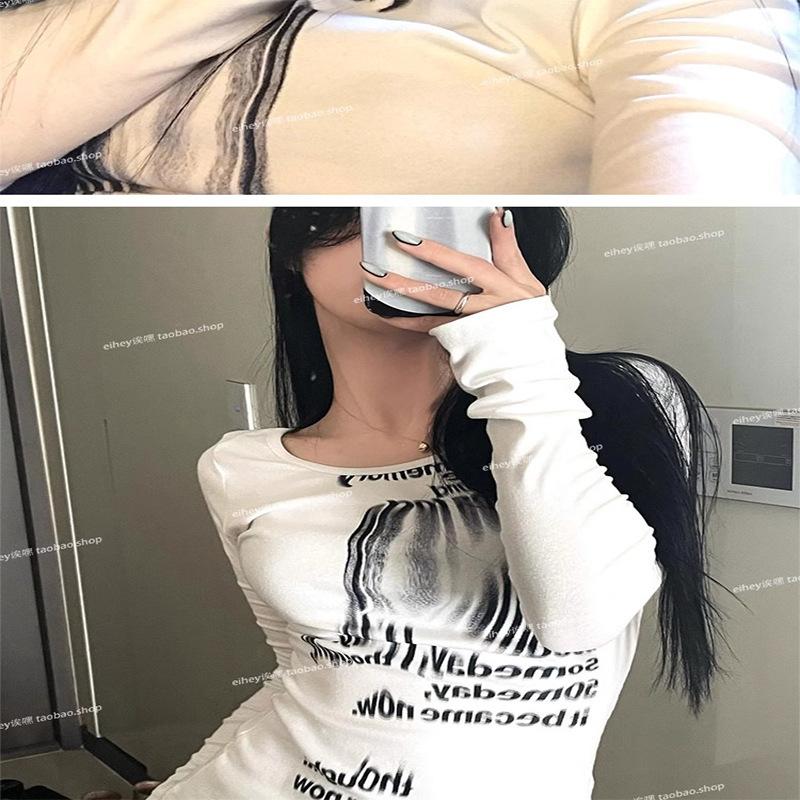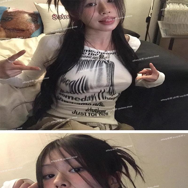 Camiseta feminina manga longa American Spice Girl primavera e outono 2025 nova moda Pure Desire camisa de base interna slim-fit top slim-fit