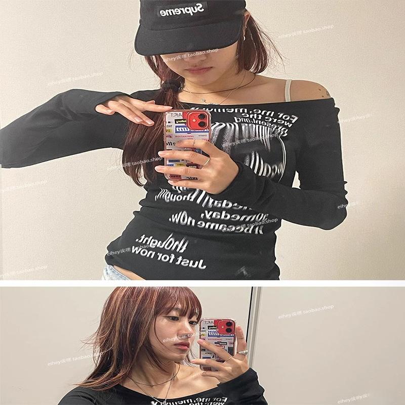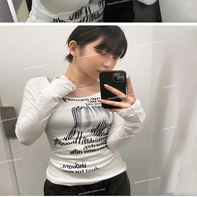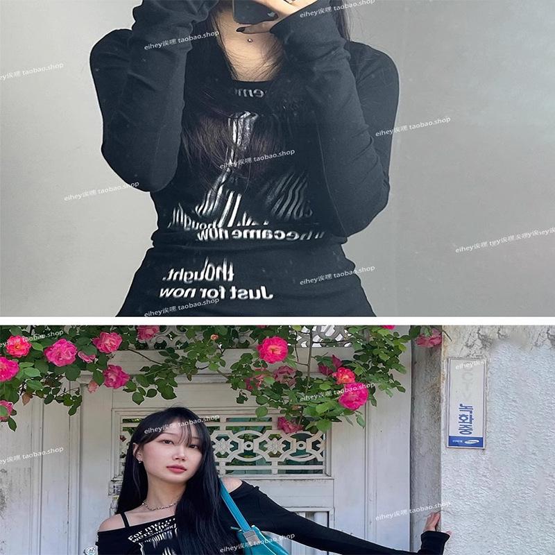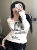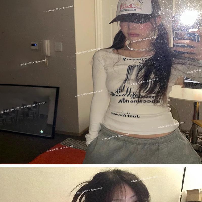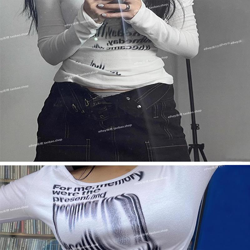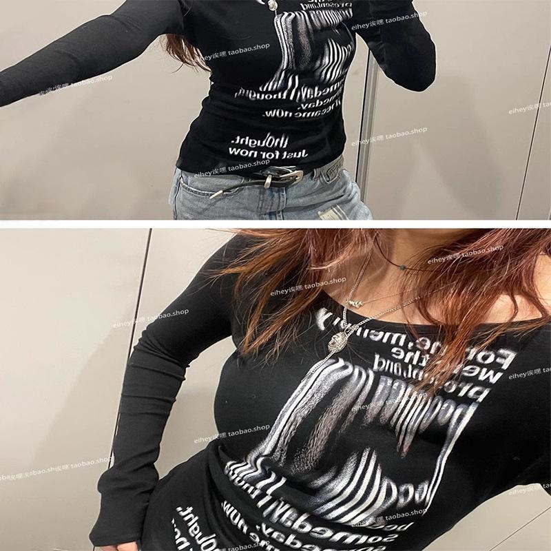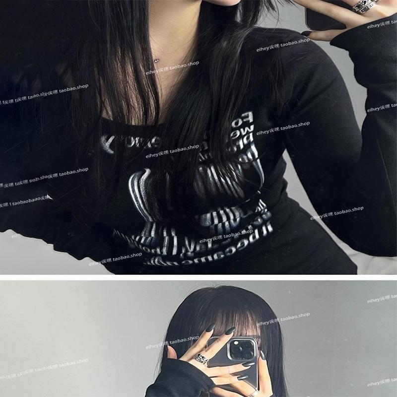 Camiseta feminina manga longa American Spice Girl primavera e outono 2025 nova moda Pure Desire camisa de base interna slim-fit top slim-fit