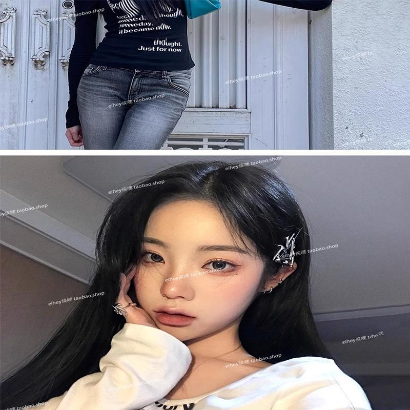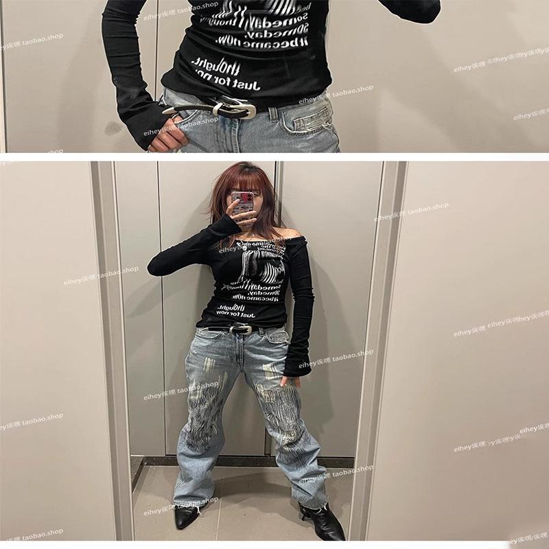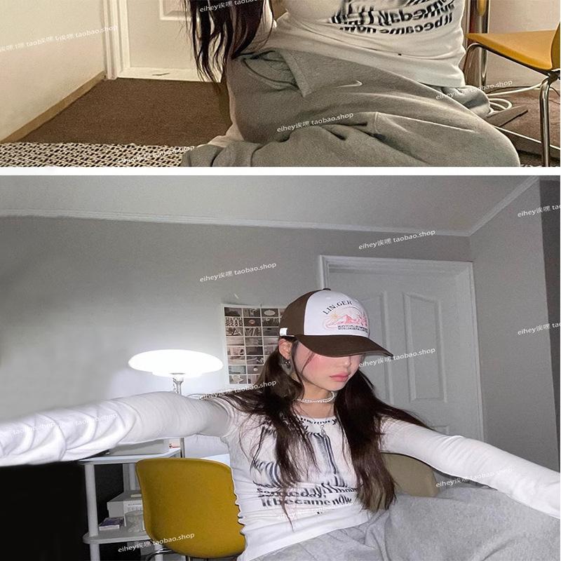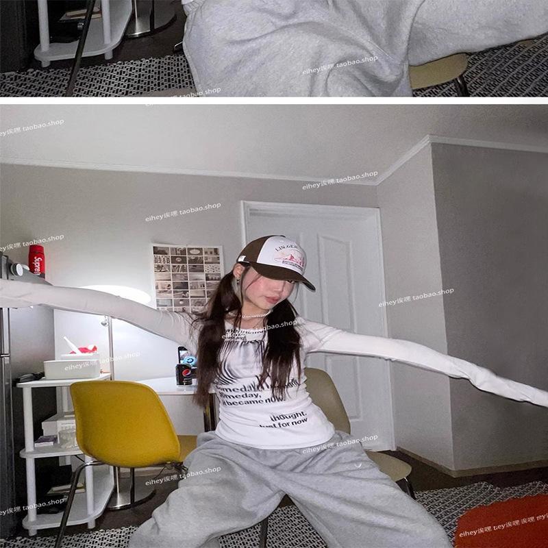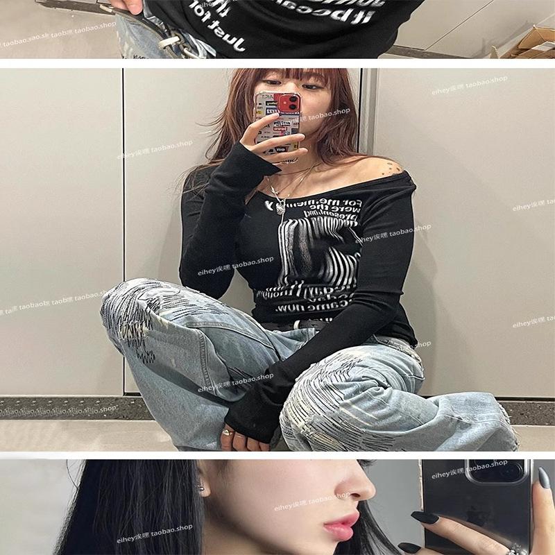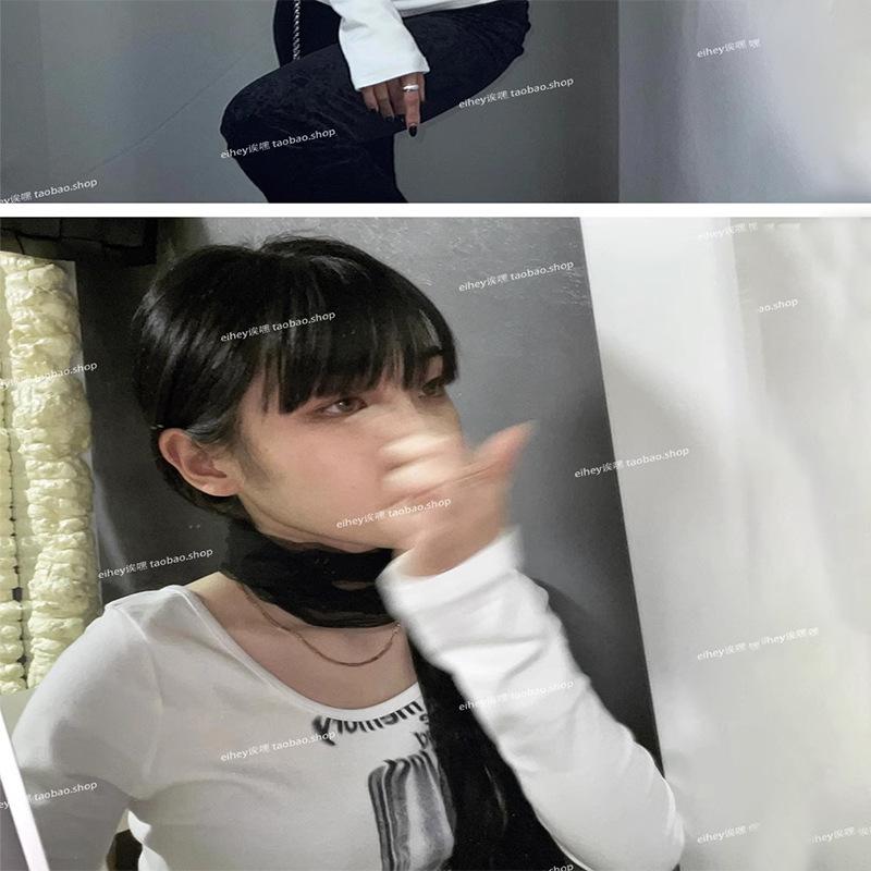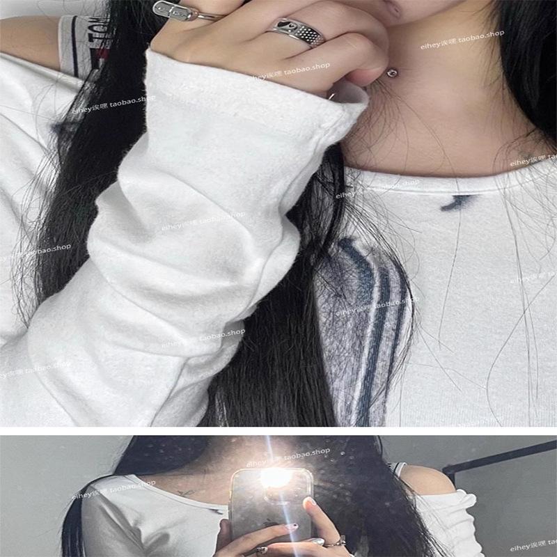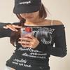 Camiseta feminina manga longa American Spice Girl primavera e outono 2025 nova moda Pure Desire camisa de base interna slim-fit top slim-fit