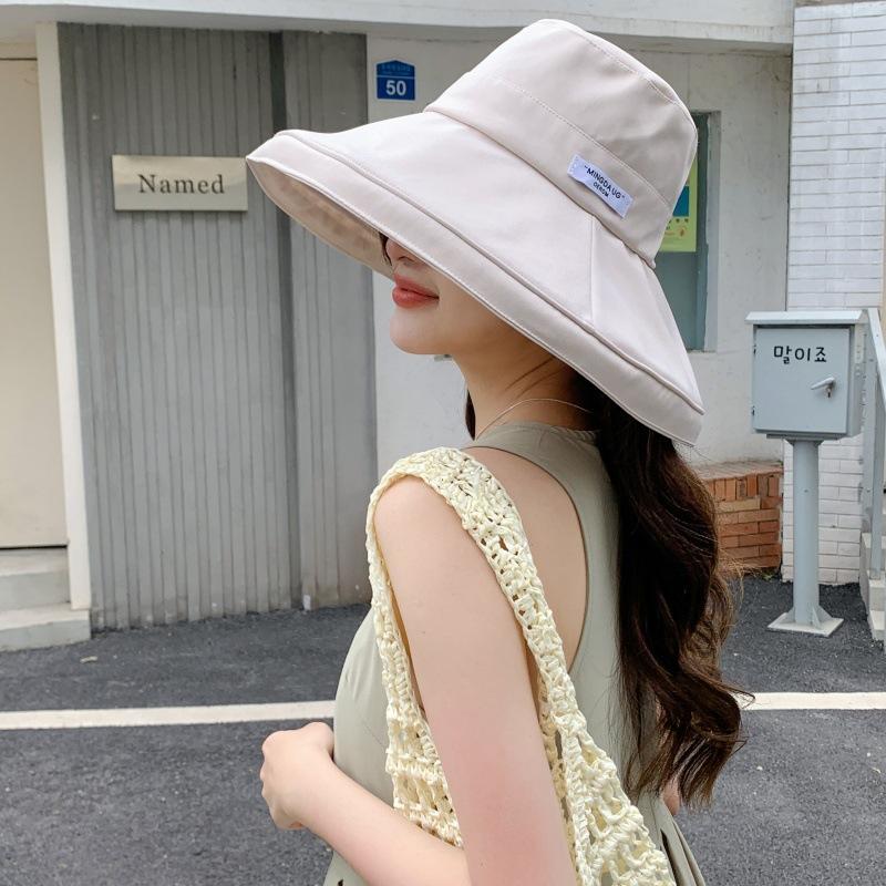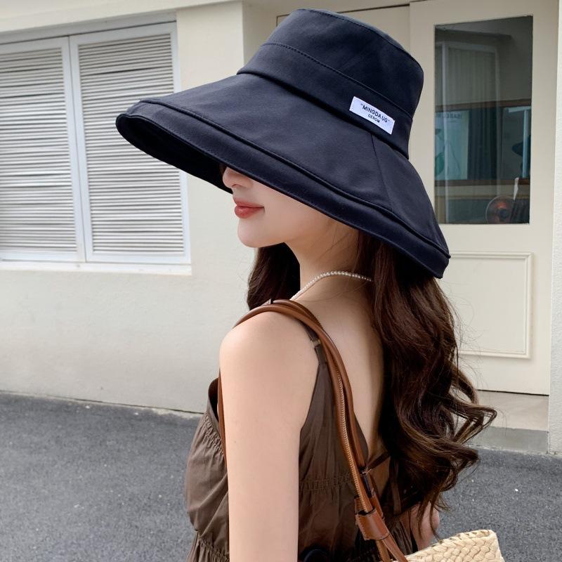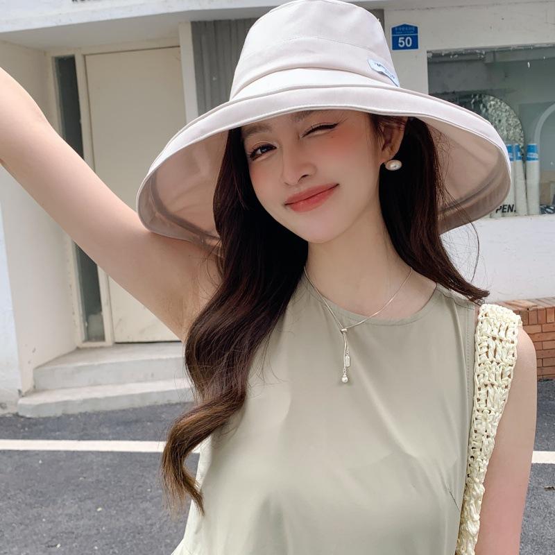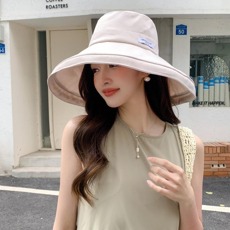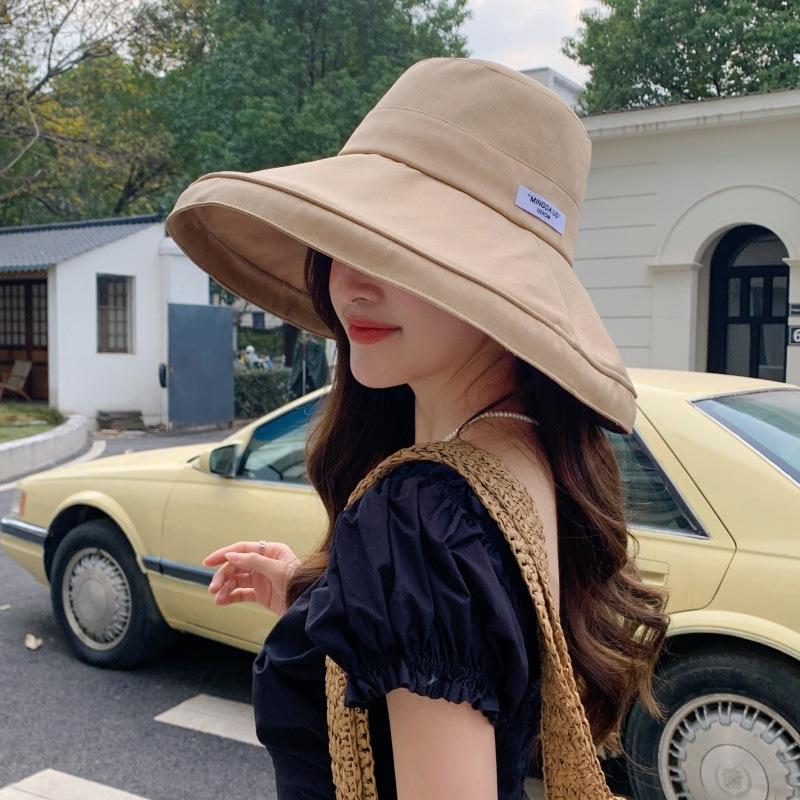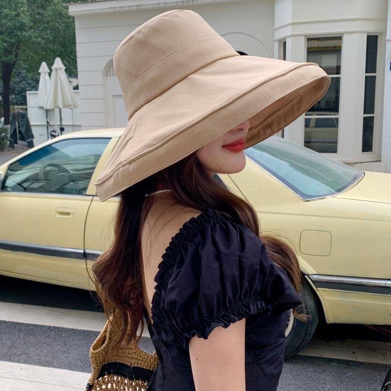 Chapéu de pescador feminino com aba larga para proteção solar e proteção solar no verão. Chapéu bucket para viagens à praia. Estilo da celebridade da internet Xiao Xiang. Japonês e coreano.