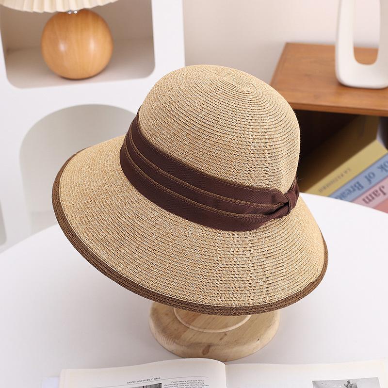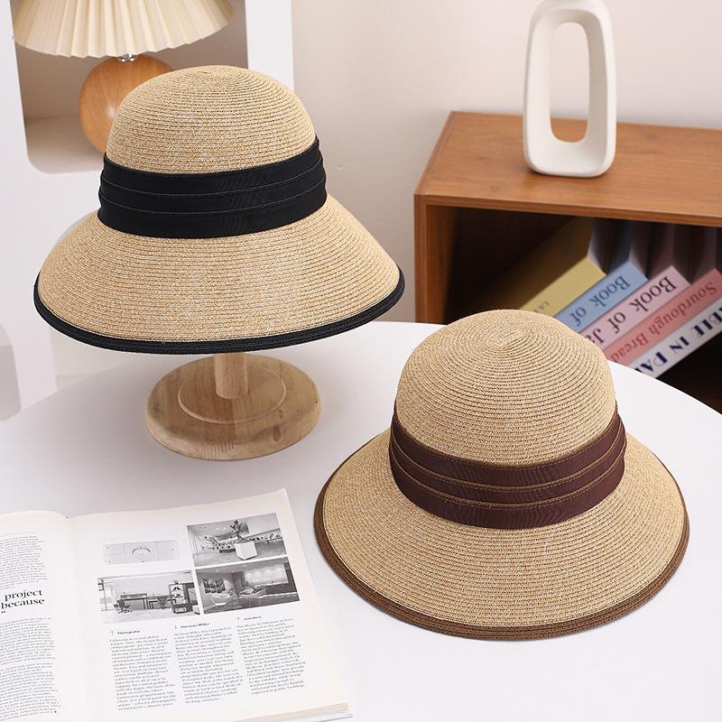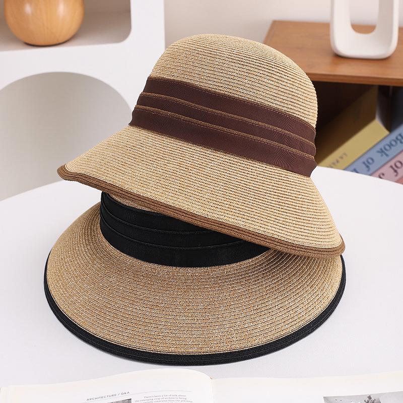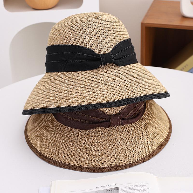 Chapéu de palha Hepburn verão 2025 chapéu de sol elegante chapéu de bacia chapéu de sol de aba grande chapéu de sol de praia