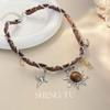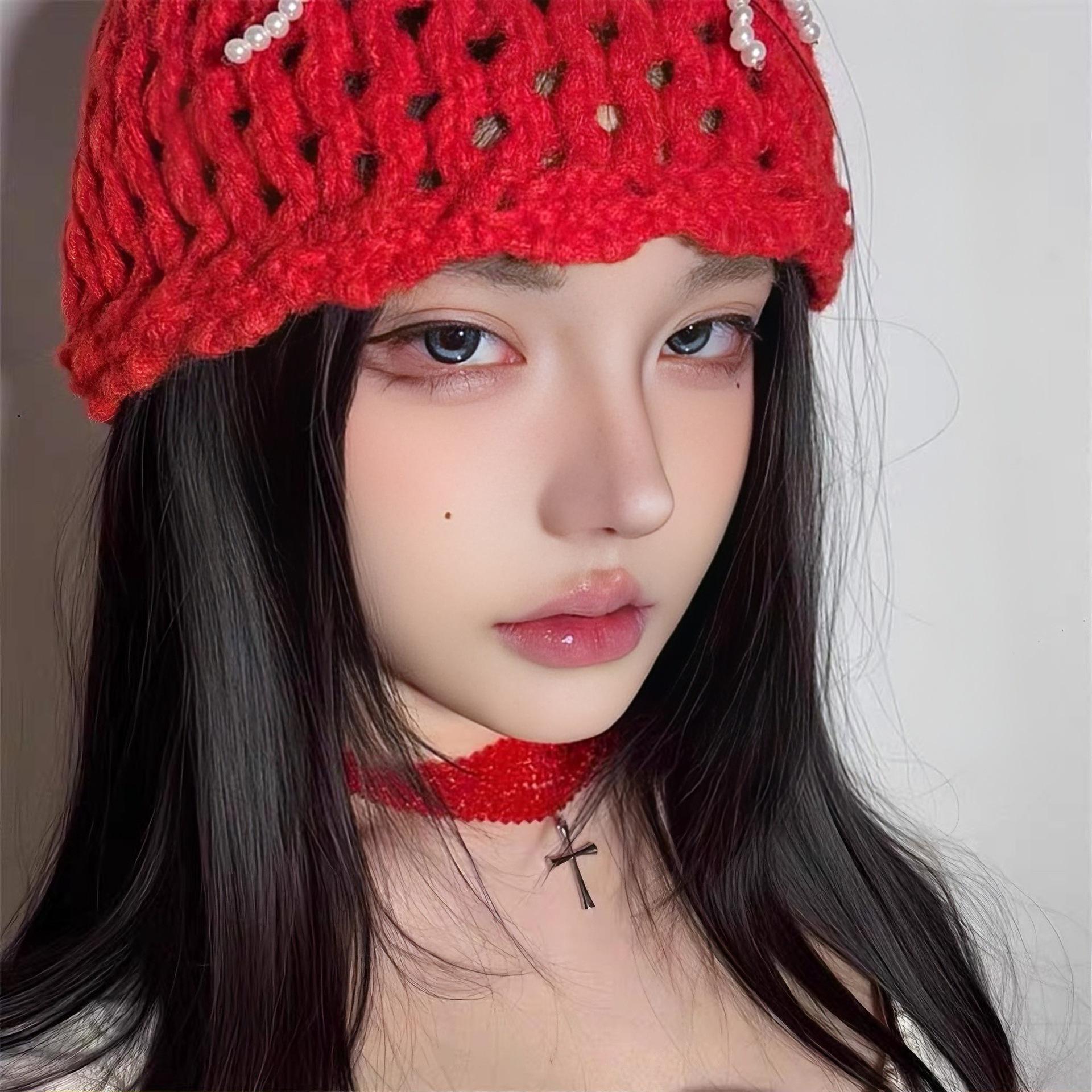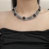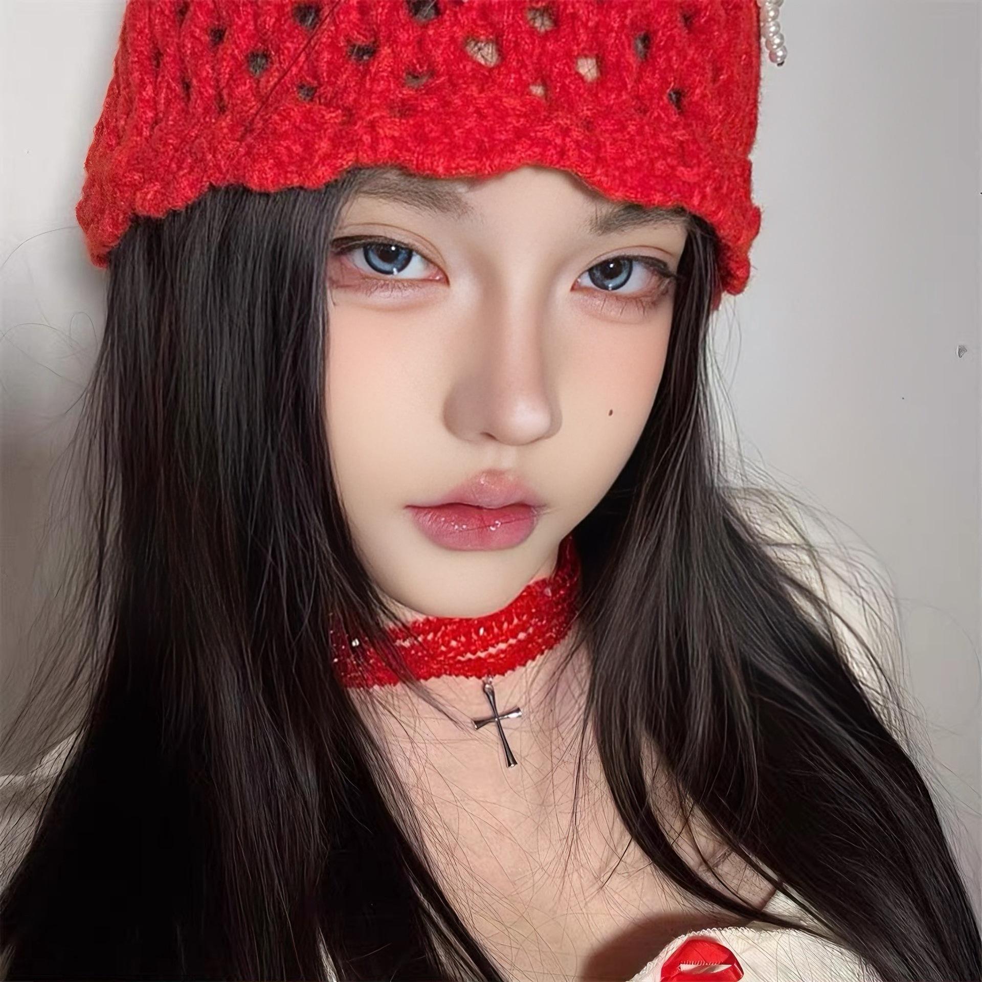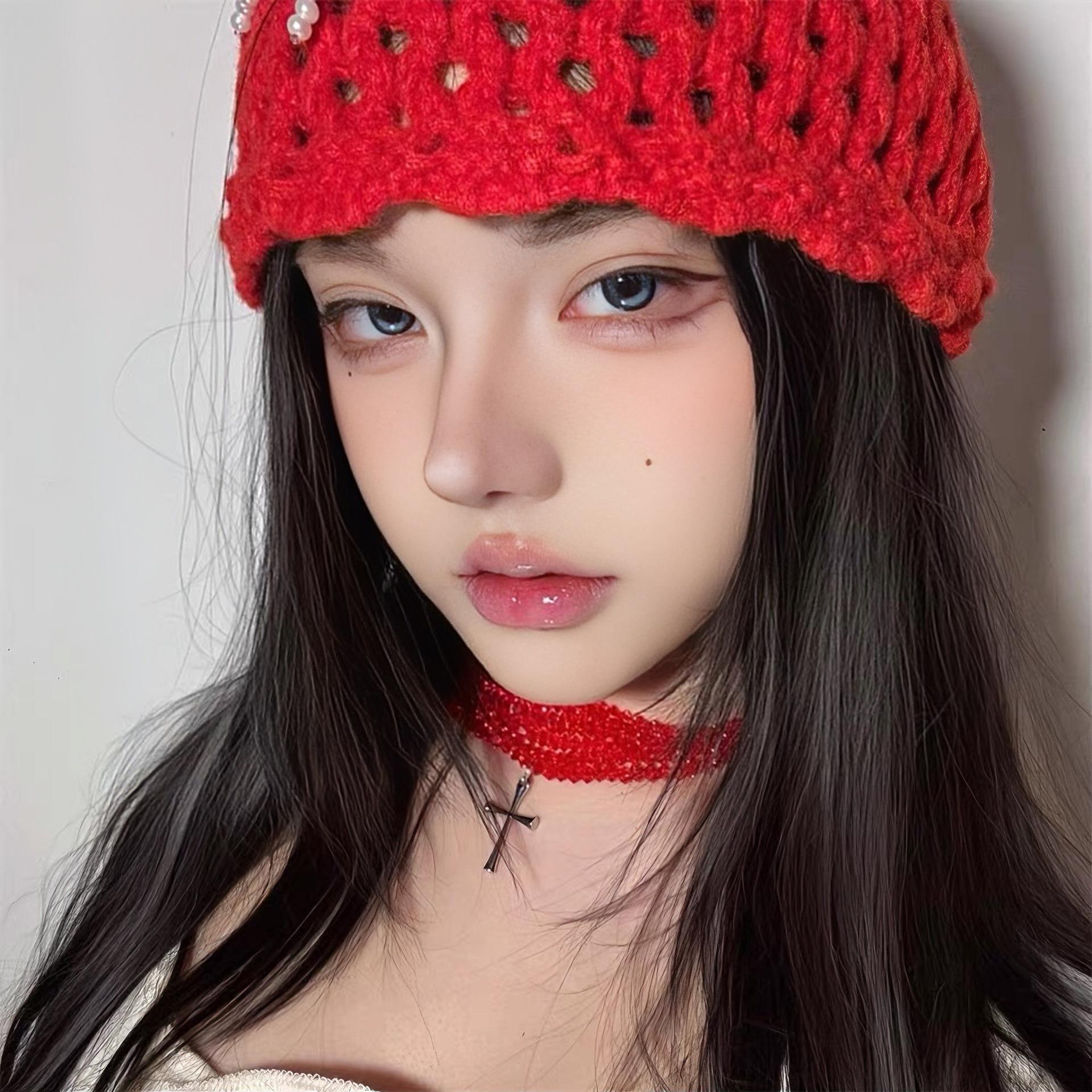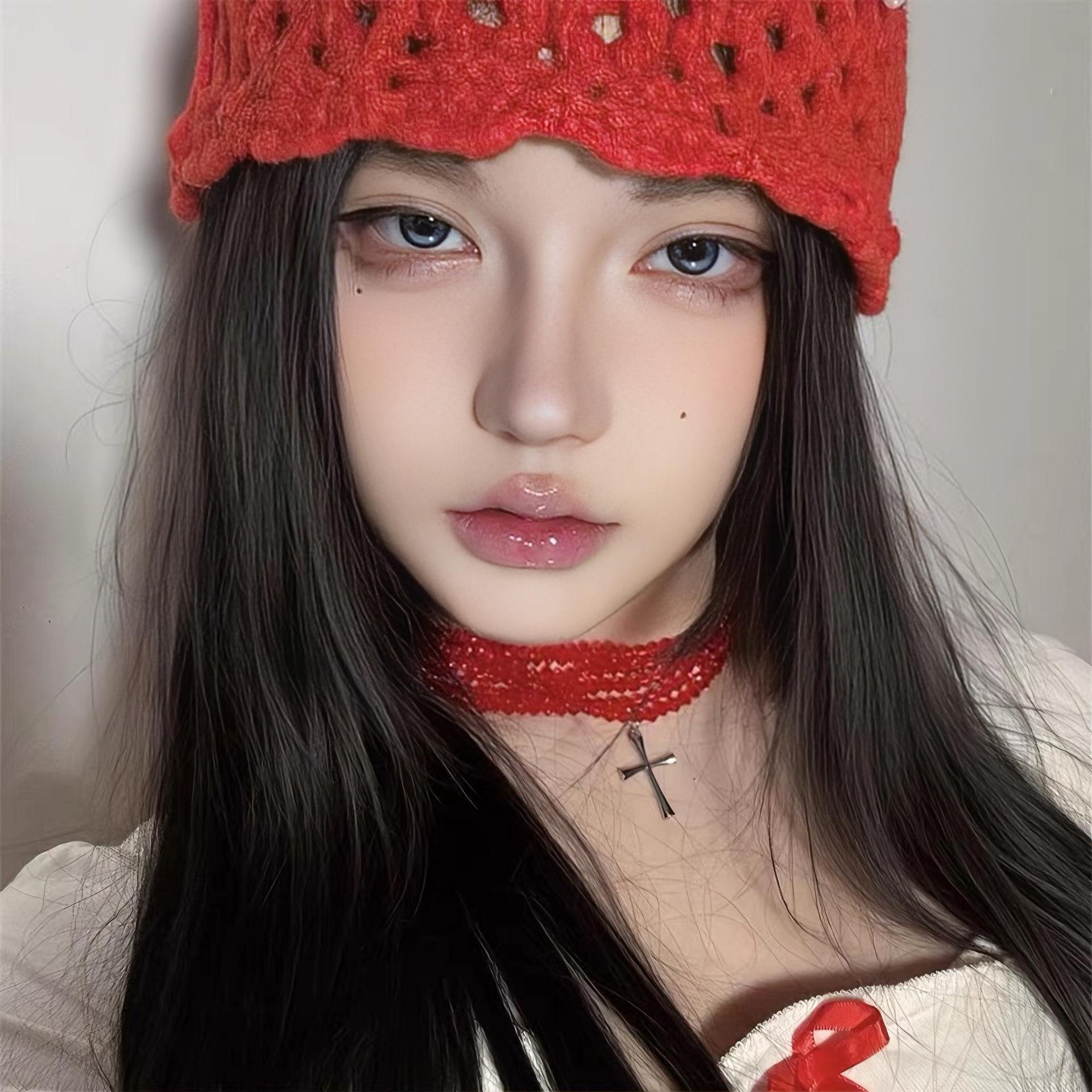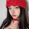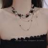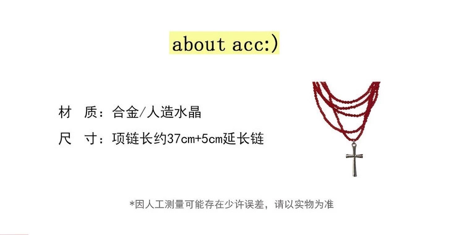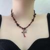 Colar estilo punk com várias camadas cruzadas, retrô, doce, descolado, subcultura, garota gostosa, corrente de clavícula, corrente de pescoço com contas vermelhas