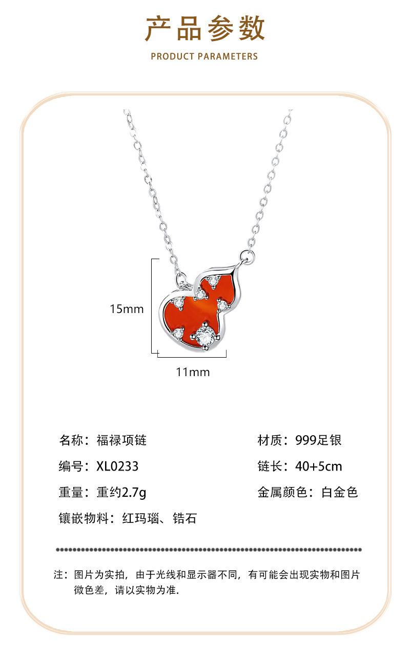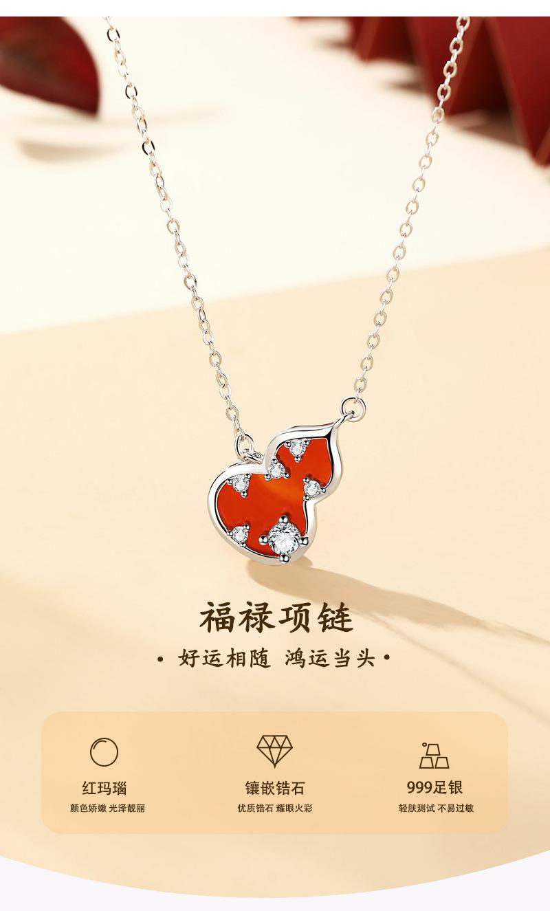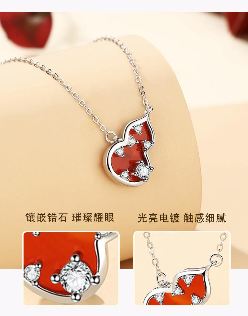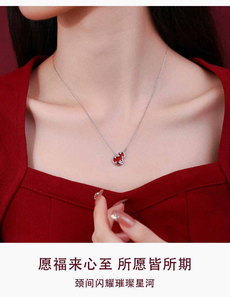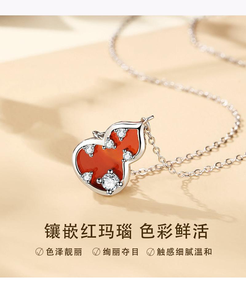 Novo estilo chinês pequeno cabaça vermelha ágata colar feminino clavícula corrente prata esterlina 999 estilo coreano design nicho nova moda ins