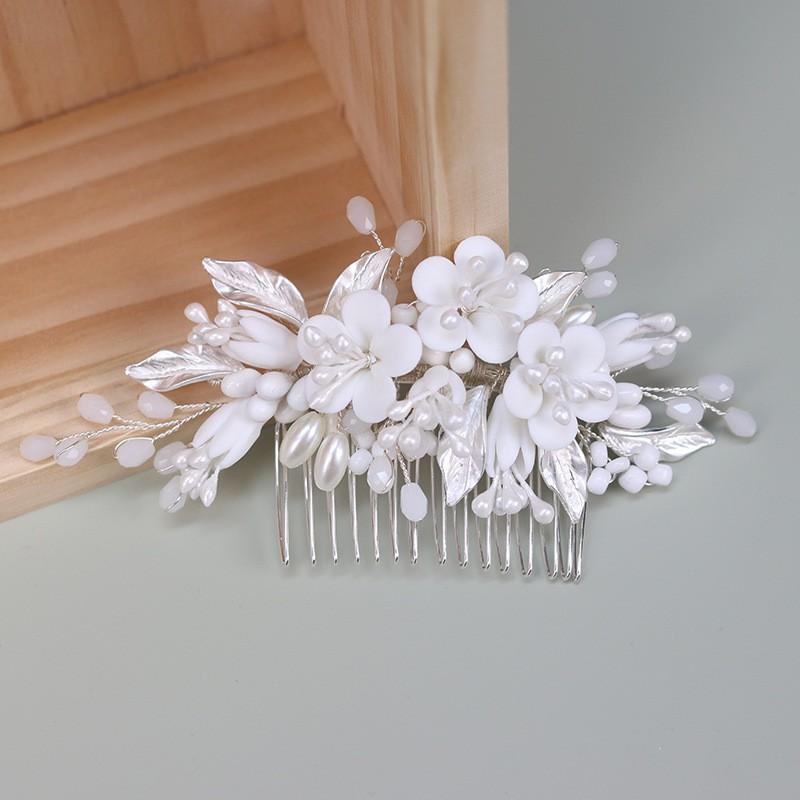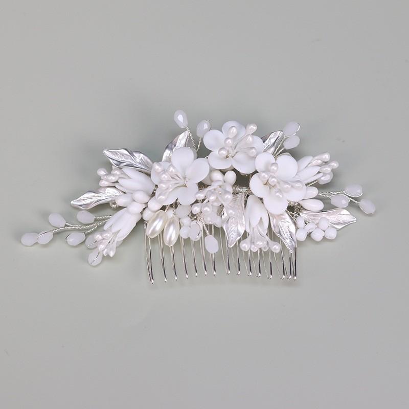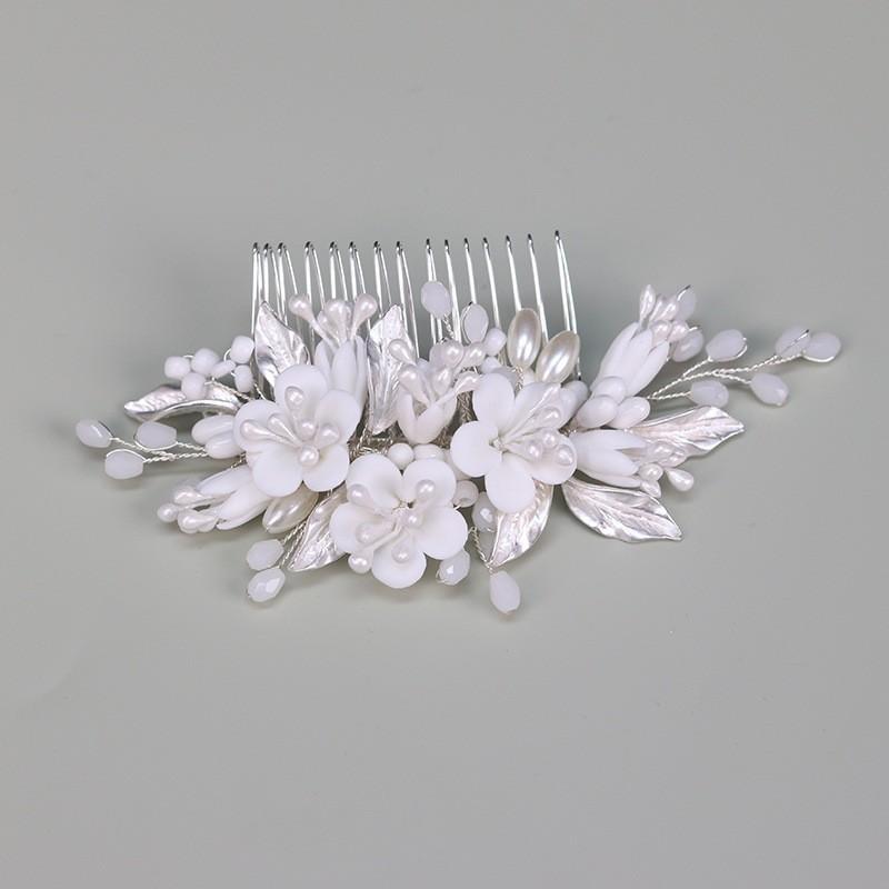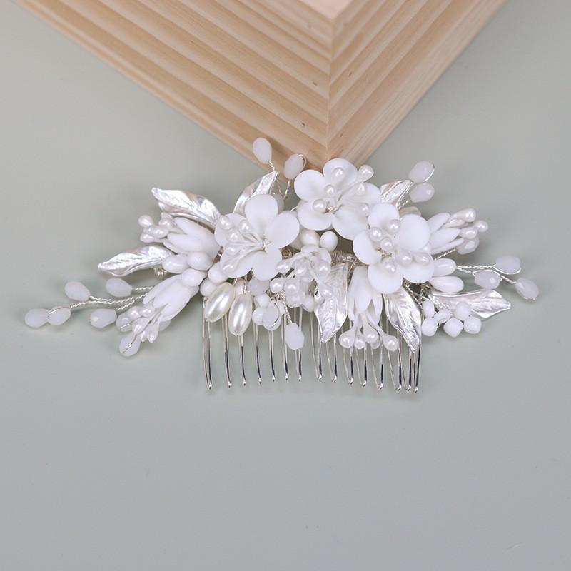 2025 novo pente de cabelo de flor de cerâmica feito à mão pente de cabelo de casamento transfronteiriço acessórios de cabelo cocar de noiva de alta qualidade