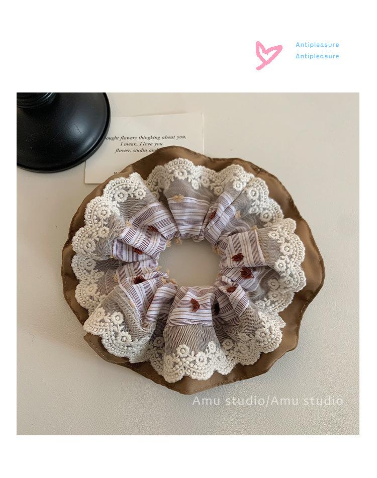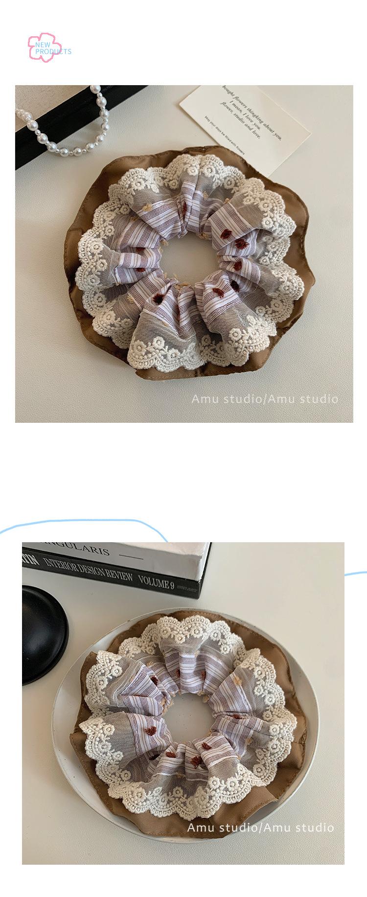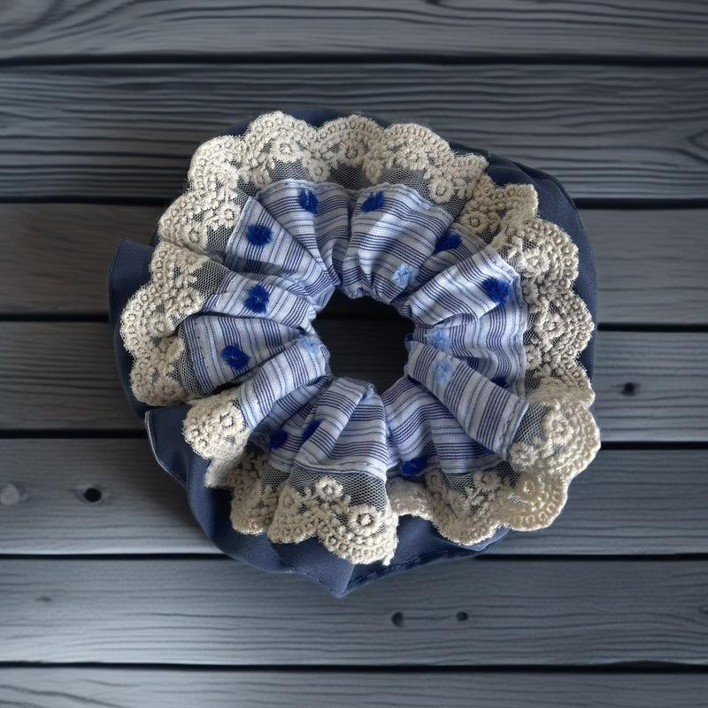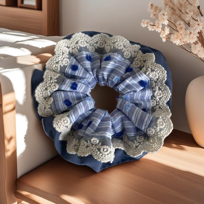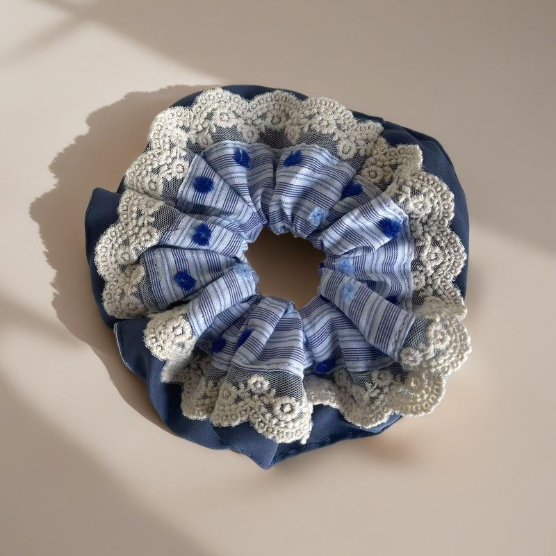 Compre Anel de cabelo de renda estilo coreano azul doce para intestino grosso, laço de cabelo de alto nível para mulheres, corda de cabeça de flor, bola de cabelo, corda decorativa no atacado no Joom.pro