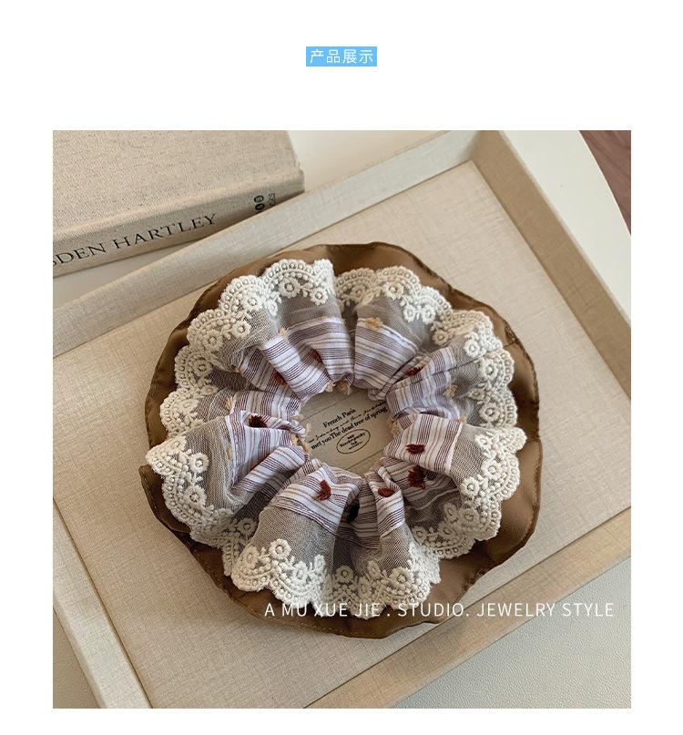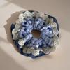Anel de cabelo de renda estilo coreano azul doce para intestino grosso, laço de cabelo de alto nível para mulheres, corda de cabeça de flor, bola de cabelo, corda decorativa