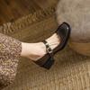 Sapatos femininos Mary Jane, primavera e outono, 2025, novo estilo francês, mocassins de salto grosso, sapatos de camada única, estilo academia britânica, bico redondo, sapatos pequenos de couro