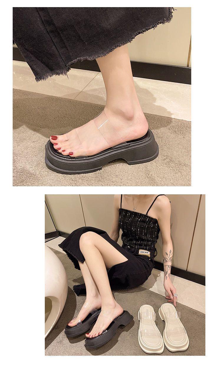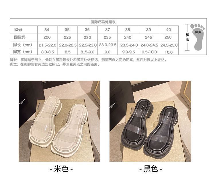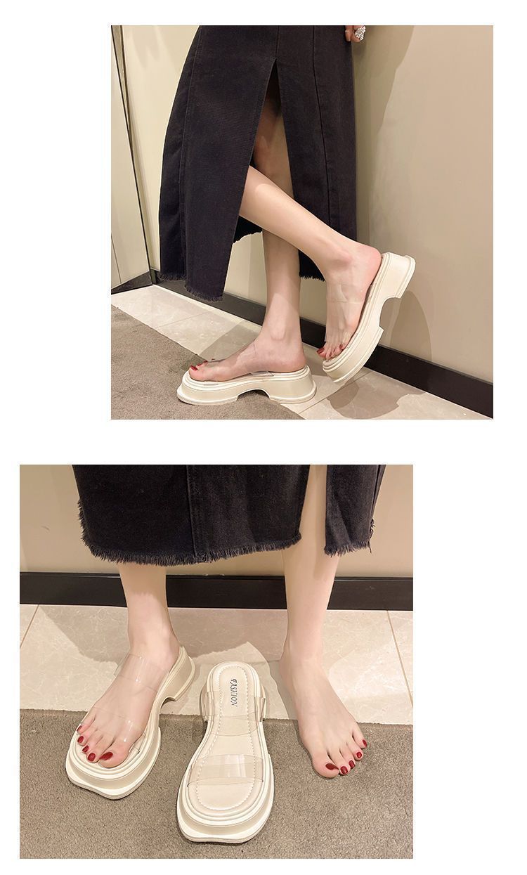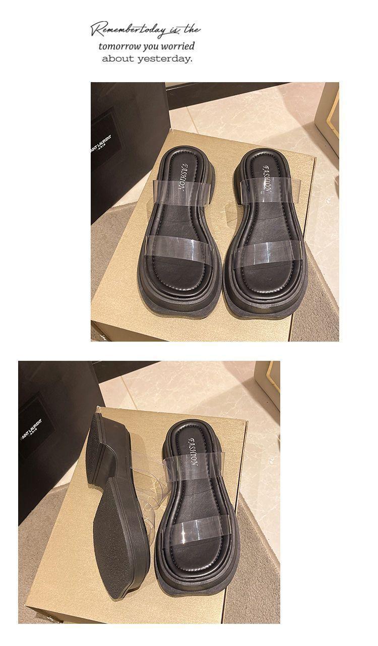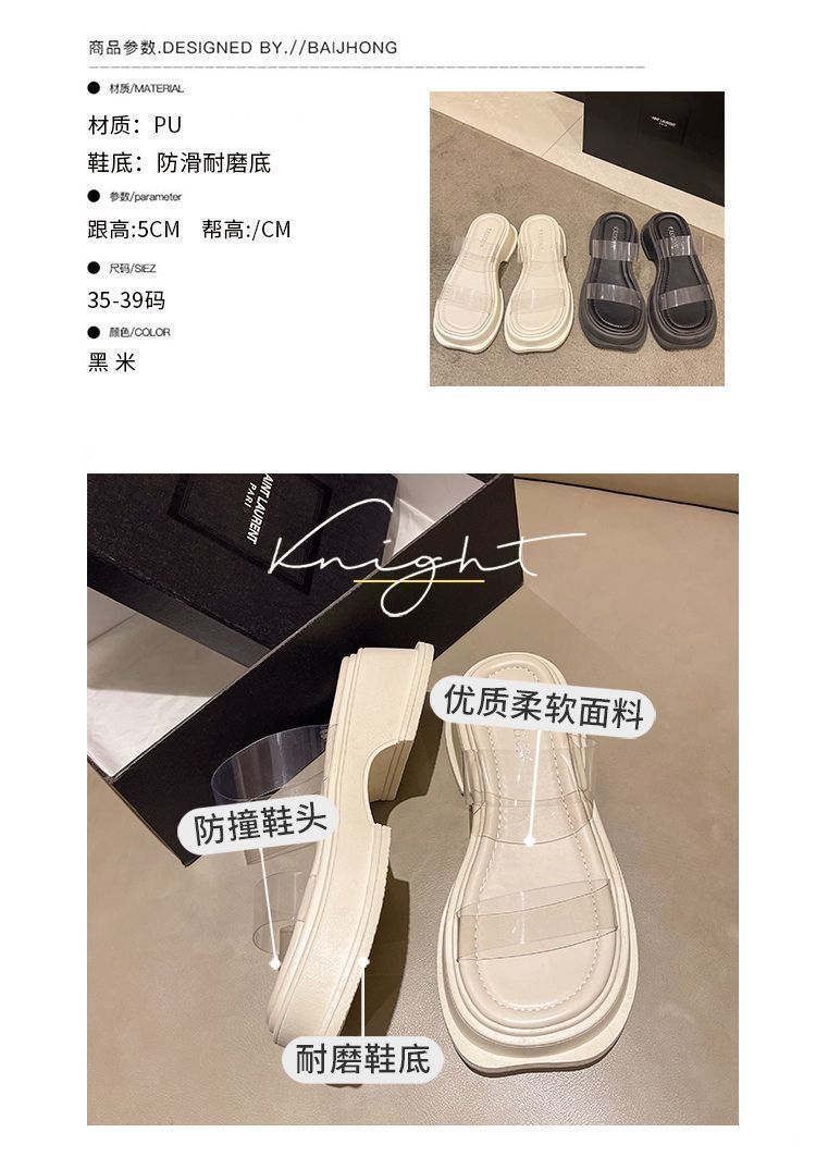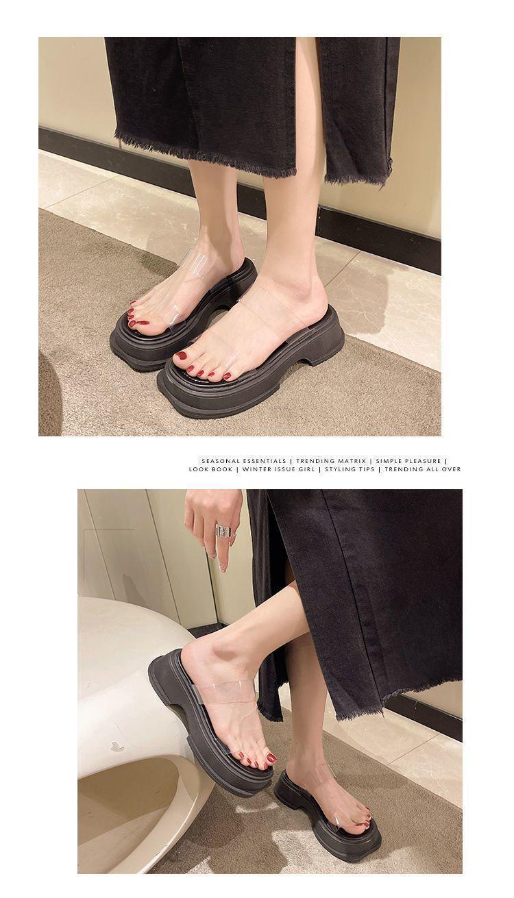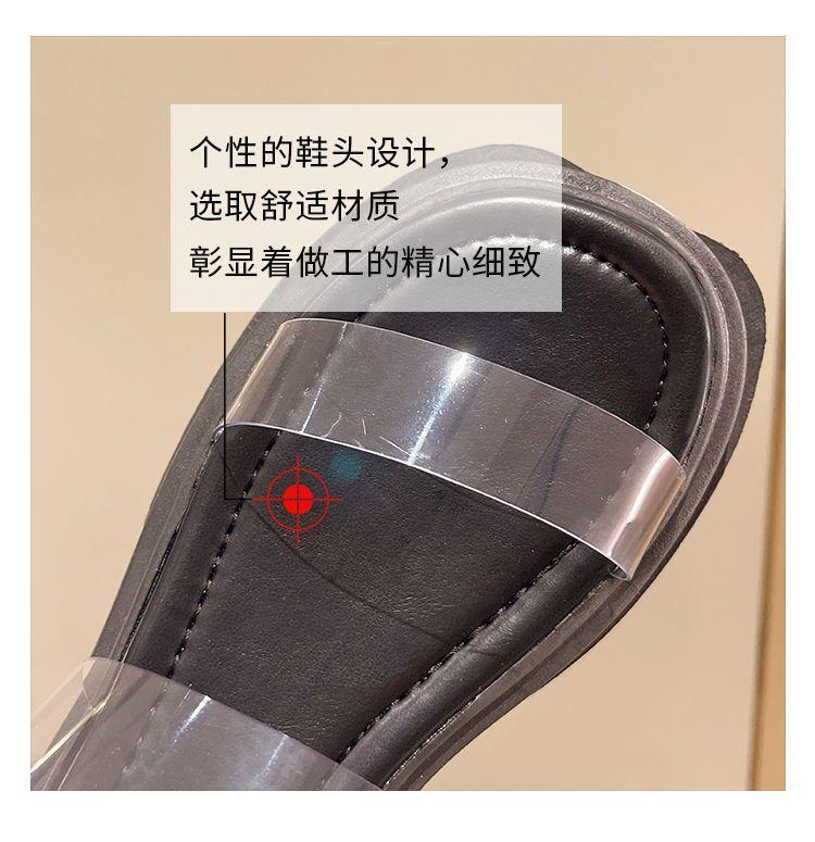 Sandálias francesas de sola grossa, sapatos de fada, roupa de verão 2023, novas sandálias de cunha com tira transparente