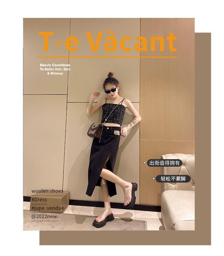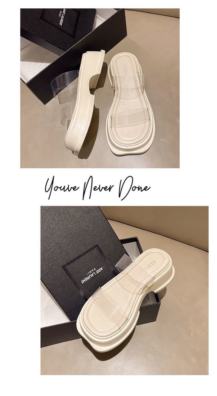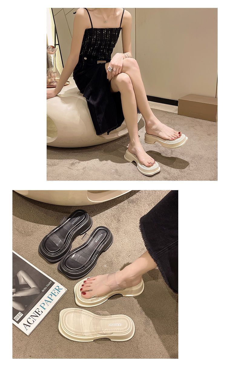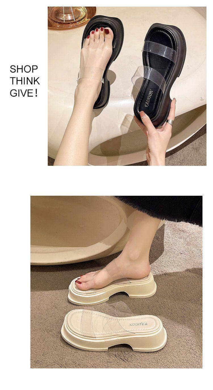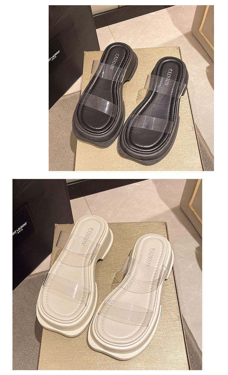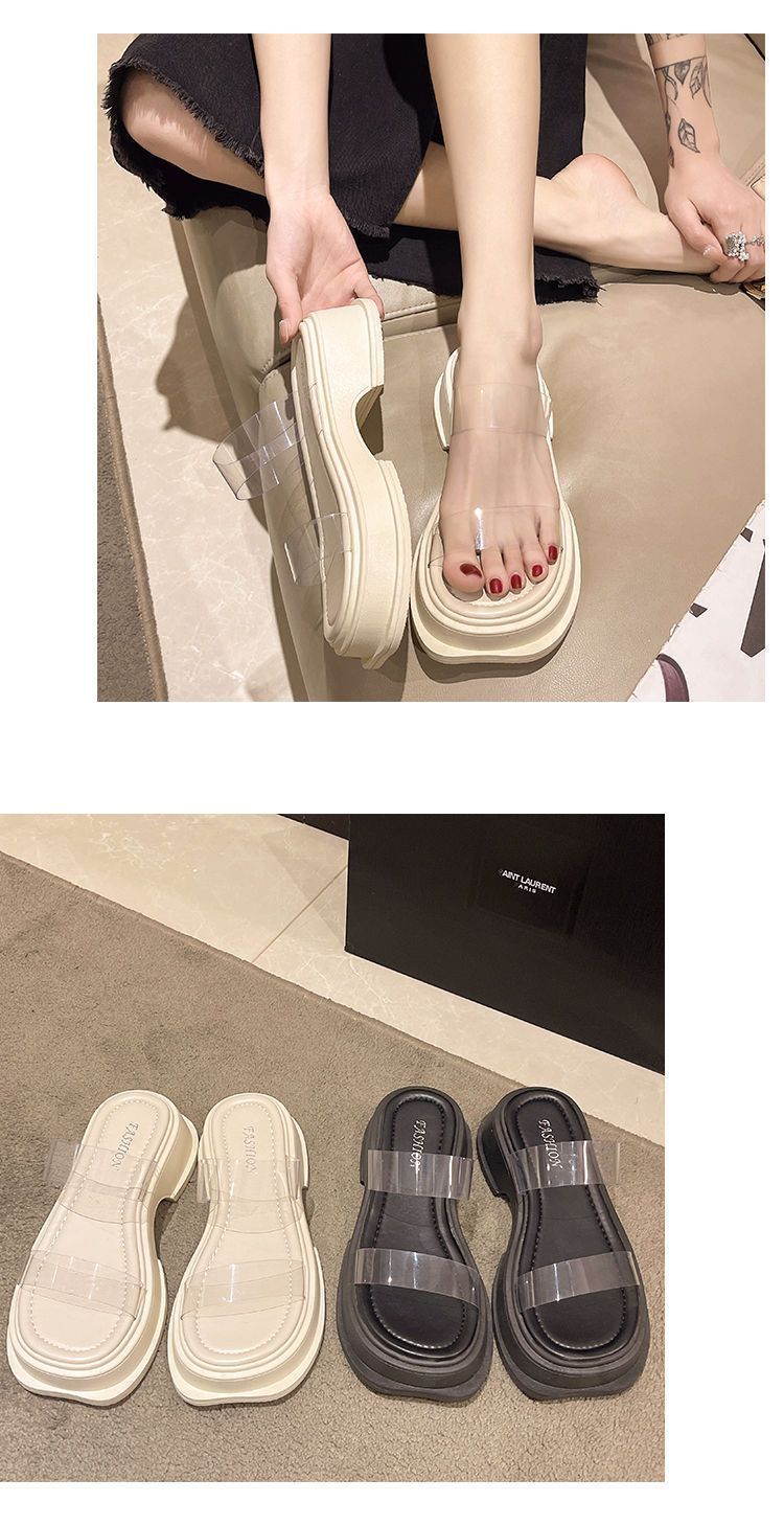 Sandálias francesas de sola grossa, sapatos de fada, roupa de verão 2023, novas sandálias de cunha com tira transparente