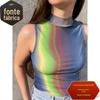 Moda Europeia e Americana Verão Sexy Spice Girl Estampa de Estrela Gola Decotada Costas Nuas Casual Curto Regata Top Decote V