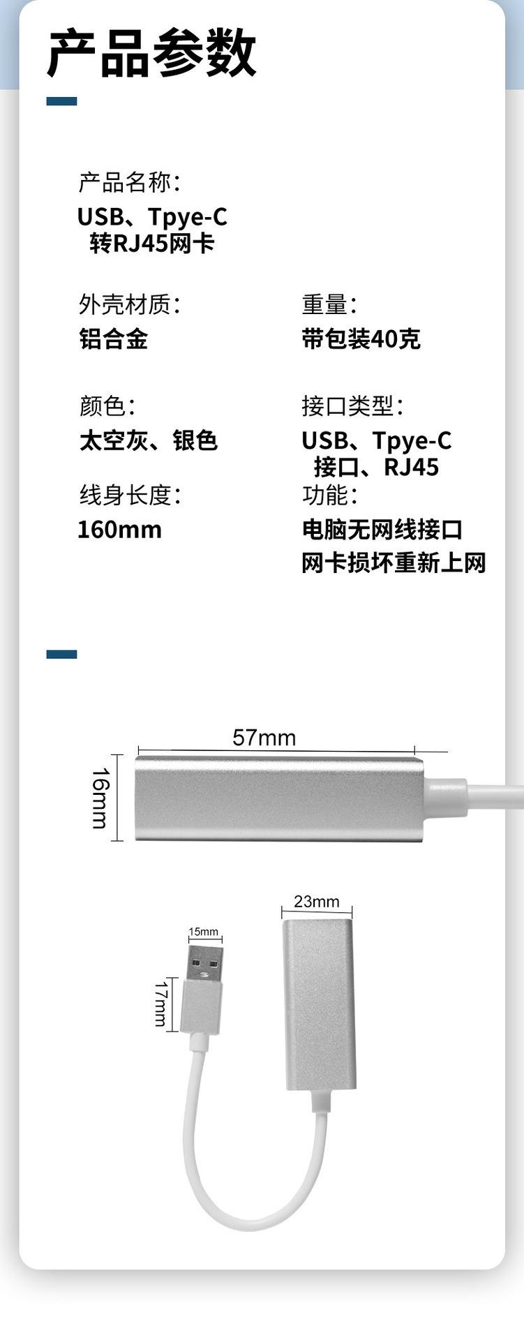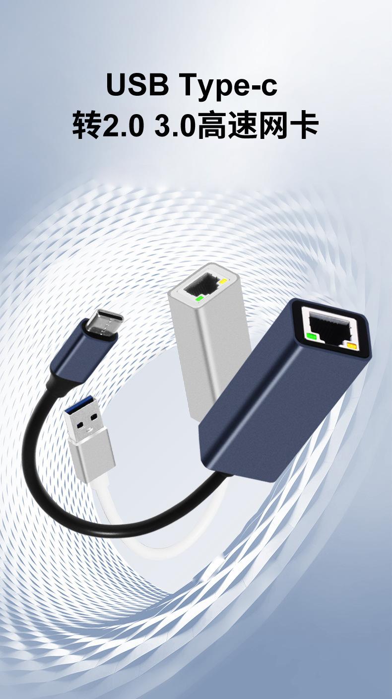 Placa de rede Gigabit Tipo C sem driver USB1000M Placa de rede sem driver Notebook Tipo C para porta de rede RJ45