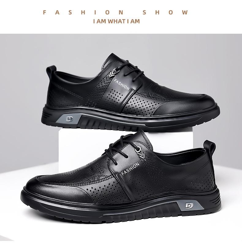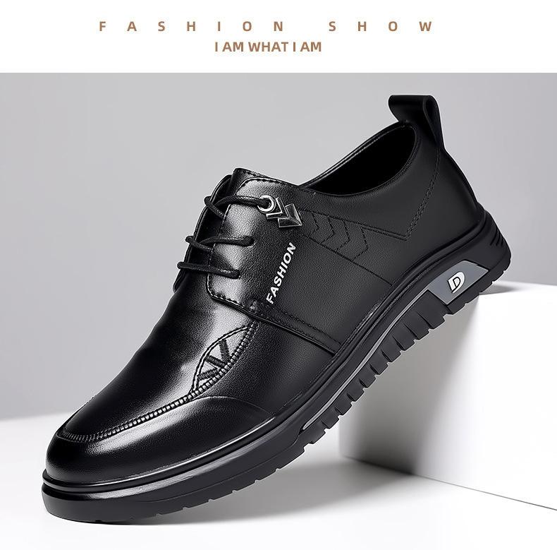Sapatos Casuais de Couro Outono Sola Macia Popular Transfronteiriço Respirável Preto Leve Formal Britânico Business Casual Sapatos de Couro Masculinos