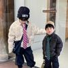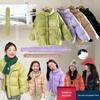 Jaqueta de plumas dupla face para meninos e meninas 24 outono e inverno novo estilo médio e grande gola de camisa infantil jaqueta xadrez quente de plumas