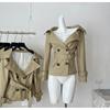 Jaqueta corta-vento longa, elegante, chique, de cintura justa, abotoamento duplo, grande, decote em V