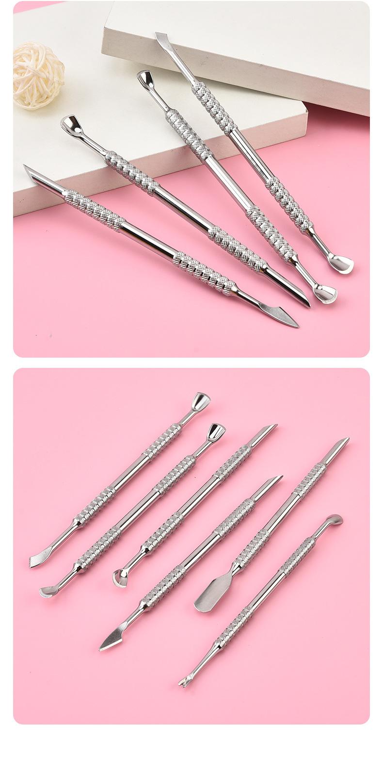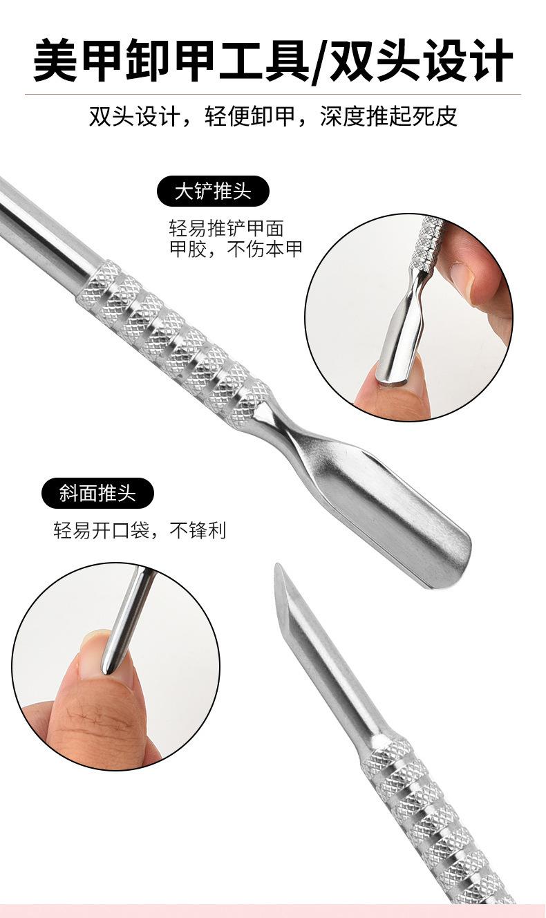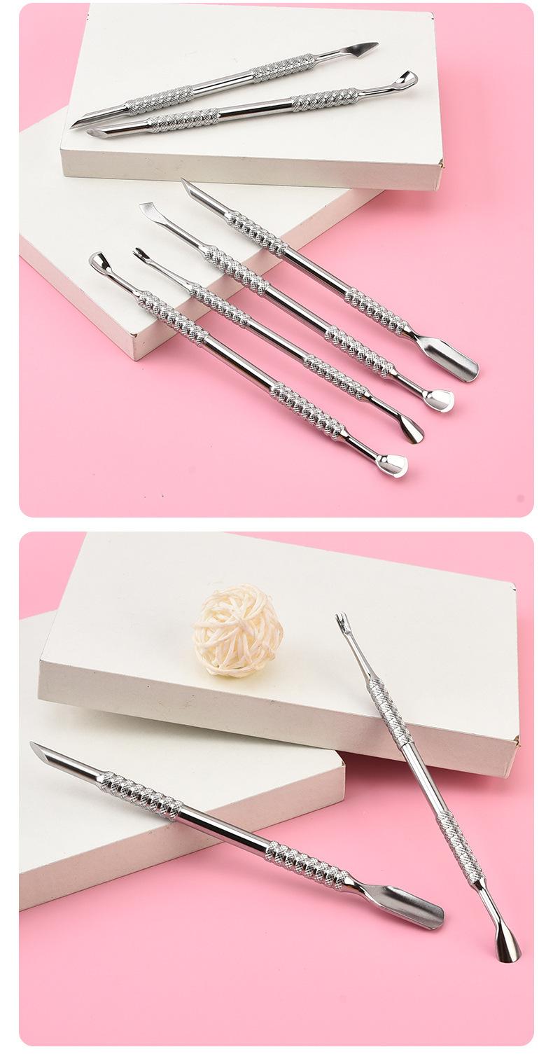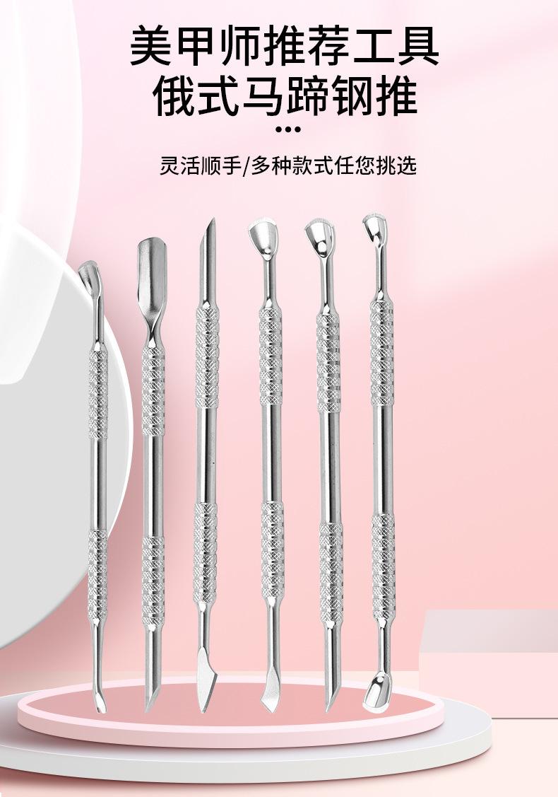 Empurrador de aço ferradura de duas cabeças russo aço push chanfrado aço push pré-processamento para remover pele morta empurrador fachada ferramentas de nail art