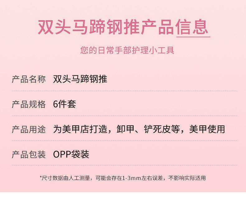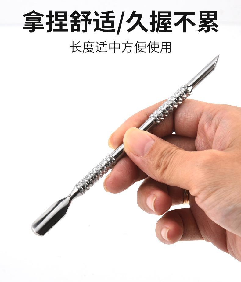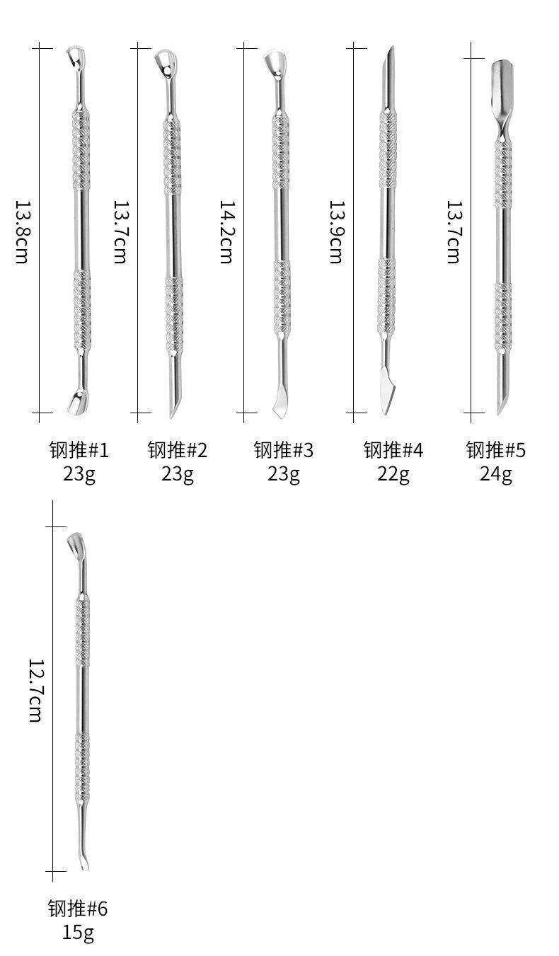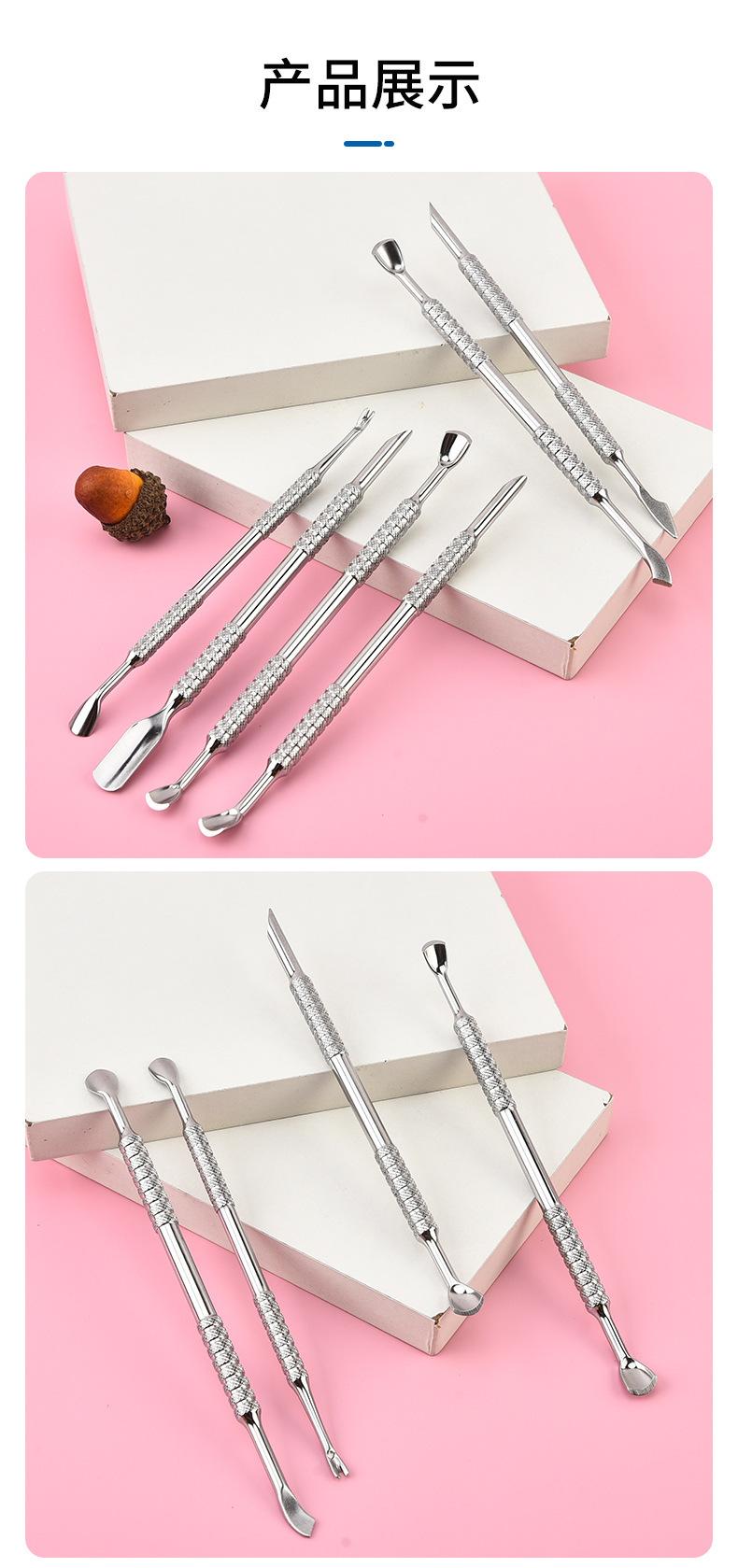 Empurrador de aço ferradura de duas cabeças russo aço push chanfrado aço push pré-processamento para remover pele morta empurrador fachada ferramentas de nail art