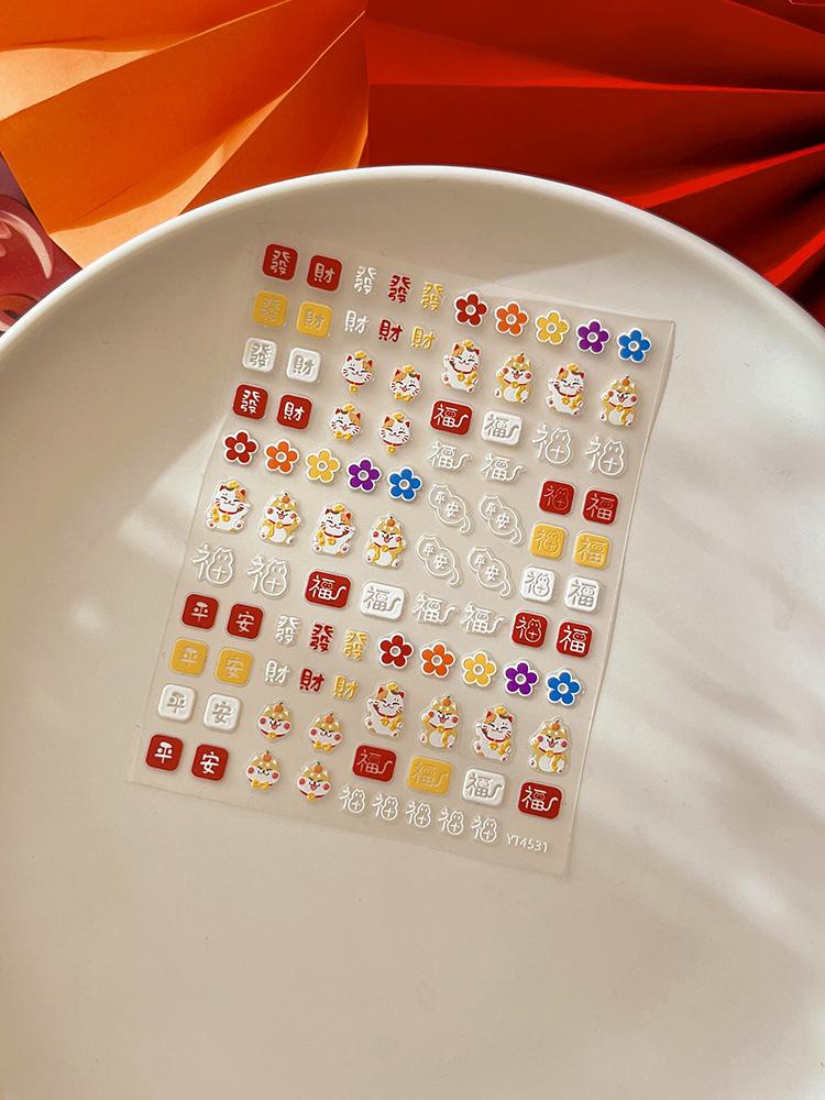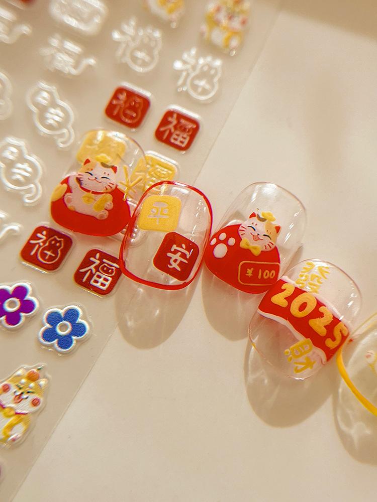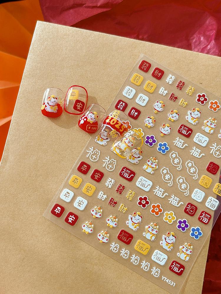 YITU figura de formiga relevo gato da sorte nail art adesivo cor flor rica com adesivo decoração de unha adesivo YT4531