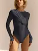 Europa e Estados Unidos transfronteiriço 2025 design temperamento novo sexy magro cor sólida apertado topo quente menina manga longa macacão feminino