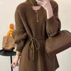 Suéter de Cor Sólida com Gola Redonda e Manga Média para Mulheres 2024 Novo Estilo de Verão Solto e Versátil Top Básico Macio Fashion