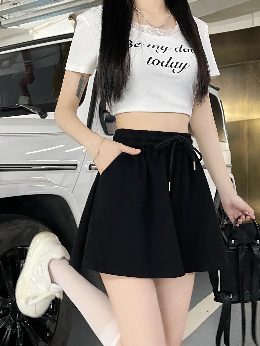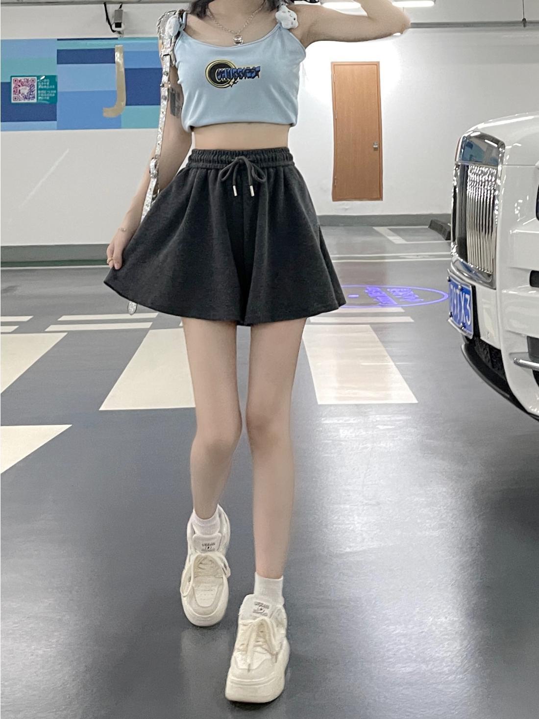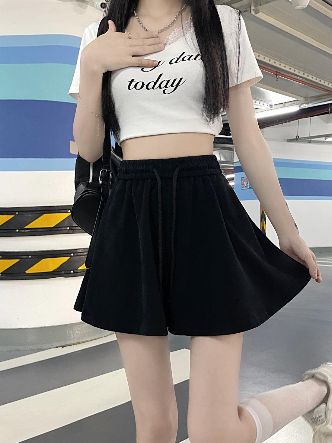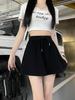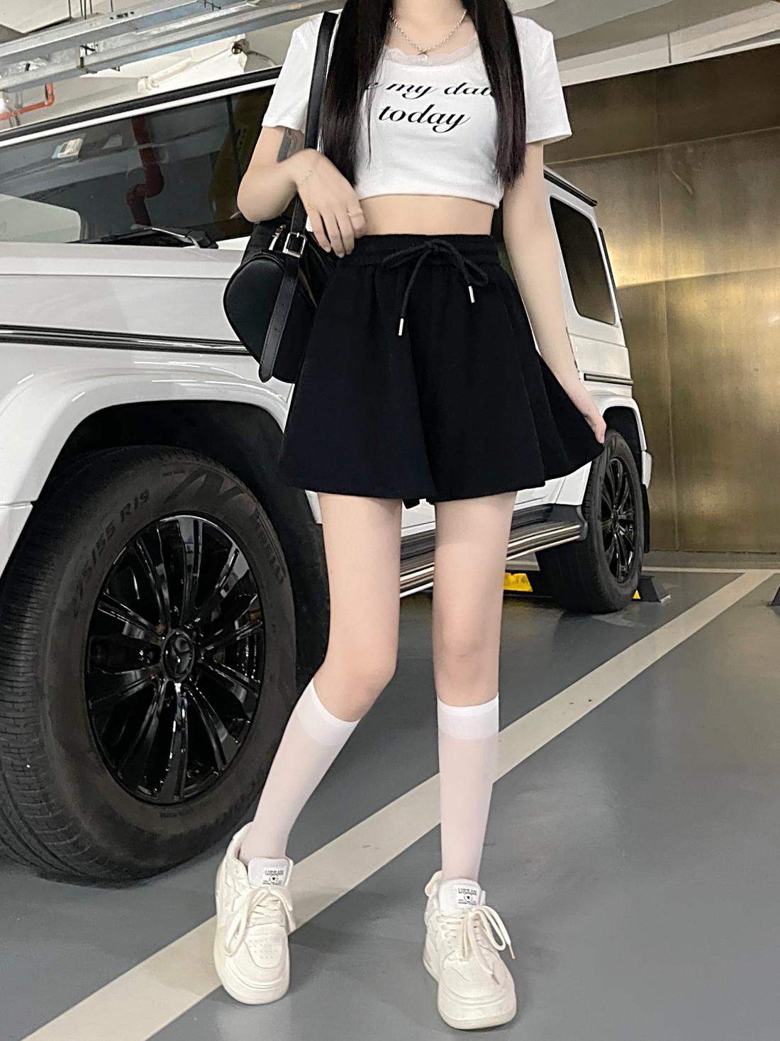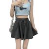 150 Shorty Wear Shorts esportivos pretos com cordão femininos de verão, soltos, casuais, de perna larga, culotes da moda