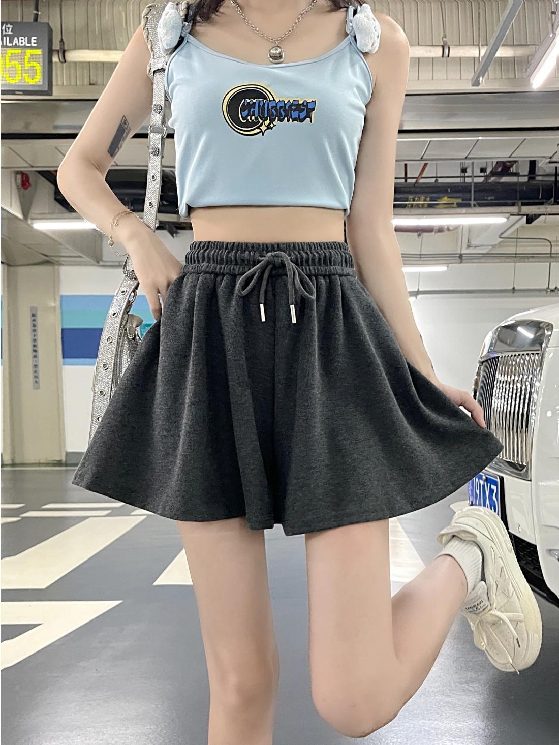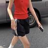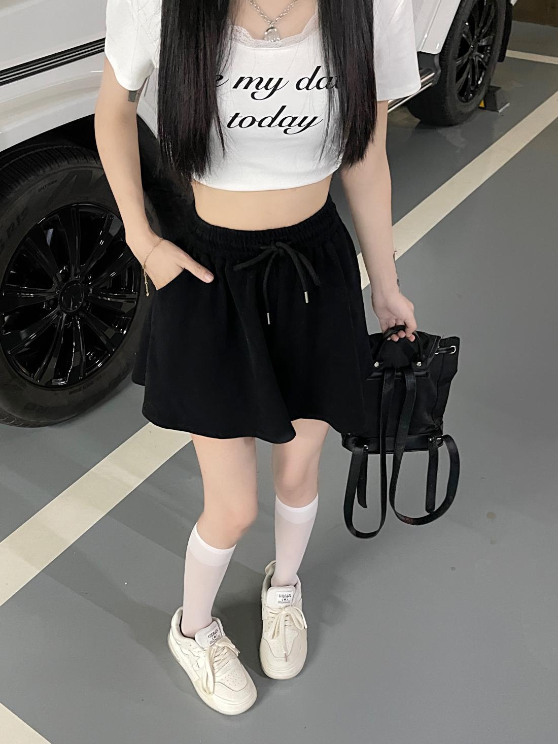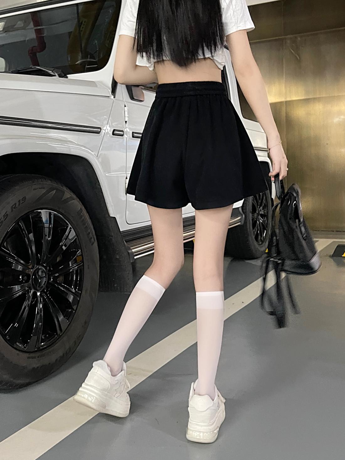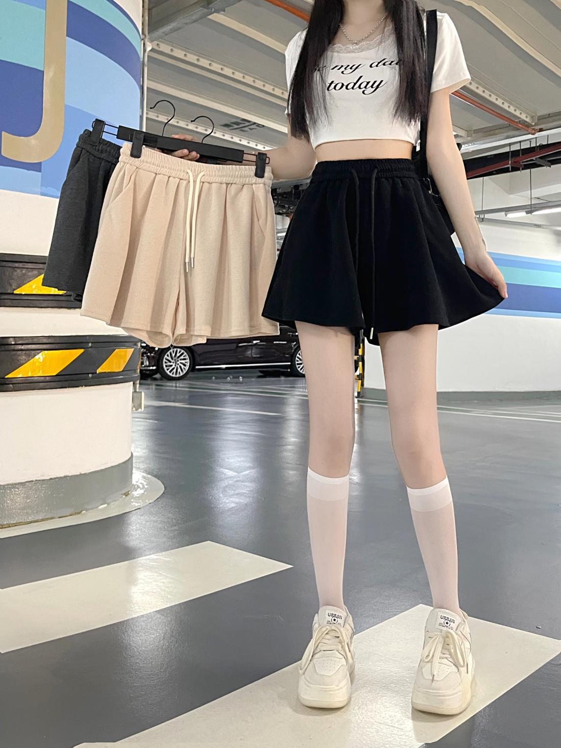 150 Shorty Wear Shorts esportivos pretos com cordão femininos de verão, soltos, casuais, de perna larga, culotes da moda